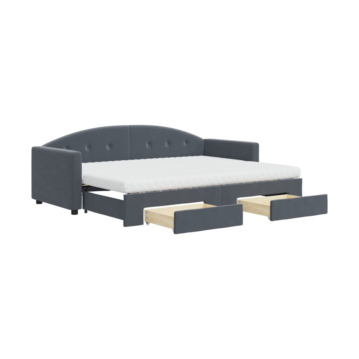 Este sofá cama 2 en 1 con cama nido y cajones, que sirve como sofá y cama, es un complemento práctico y llamativo para tu salón o dormitorio. Sofá cama versátil: El sofá cama funciona como sofá durante el día y se convierte fácilmente en una cama doble por la noche sacando la cama nido, lo que proporciona una solución práctica para recibir invitados y maximizar el espacio. Amplio espacio de almacenamiento: Esta cama de invitados tiene dos cajones con ruedas que brindan un amplio espacio para guardar ropa, calcetines, juguetes, cojines, etc. Cómodo colchón de espuma: Esta cama se suministra con dos colchones de espuma para un máximo apoyo y una comodidad óptima. Terciopelo suave y construcción sólida: Este sofá cama tiene una estructura resistente hecha de madera y metal y está tapizado en terciopelo suave y cómodo.