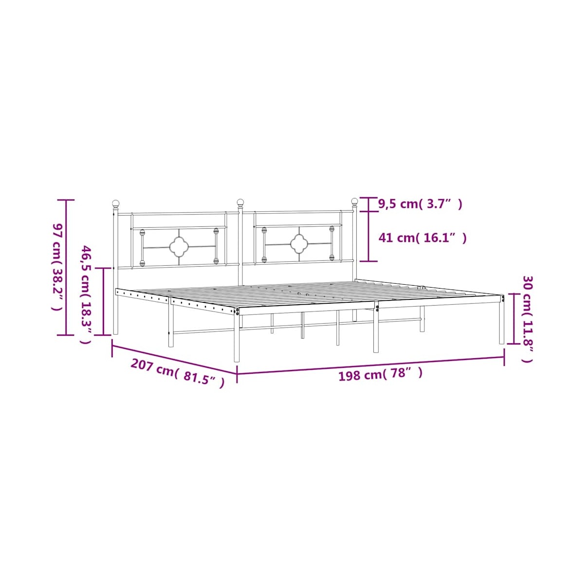 - Dimensiones adecuadas del colchón: 193 x 203 cm (ancho x largo) (colchón no incluido)