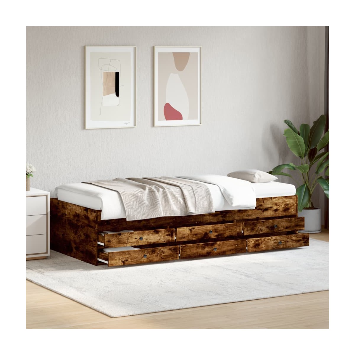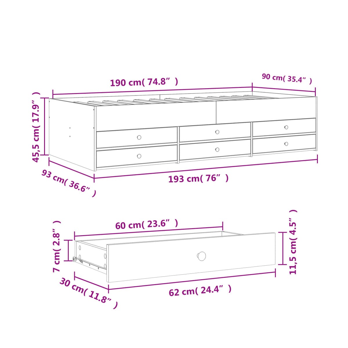 Este sofá cama 2 en 1 con cajones, que sirve como sofá y cama, es un complemento práctico y llamativo para tu salón o dormitorio. Sofá cama versátil: el sofá cama funciona como sofá durante el día o como cama por la noche, proporcionando una solución conveniente para recibir invitados y maximizar el espacio. Amplio espacio de almacenaje: Esta cama de invitados tiene 6 cajones con ruedas que brindan un amplio espacio para guardar ropa, calcetines, juguetes, cojines, etc.Sólida construcción: Este sofá cama tiene una estructura robusta de madera de ingeniería. La madera de ingeniería es de una calidad excepcional con una superficie lisa y cuenta con la fuerza, la estabilidad y la resistencia a la humedad. Información útil:Ten en cuenta que la entrega incluye únicamente una estructura de cama. El colchón no está incluido. Puedes echar un vistazo a nuestra tienda para buscar el correspondiente colchón.