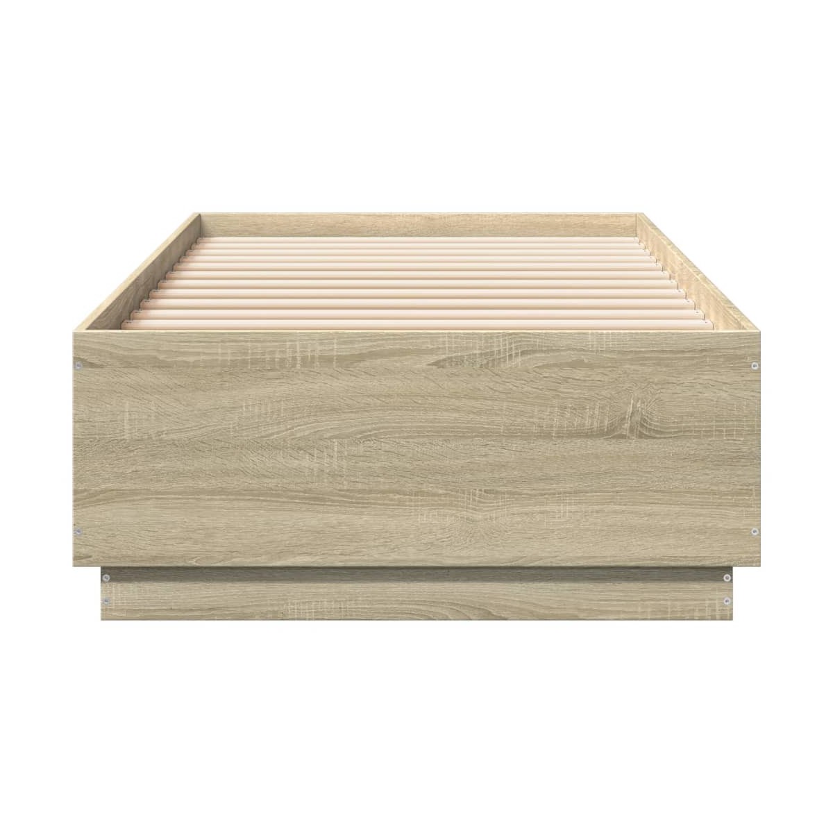Consigue un sueño más reparador con esta estructura de cama. Es un aporte acogedor para cualquier dormitorio. Material duradero: La madera de ingeniería tiene una calidad excepcional, con una superficie lisa y también cuenta con fuerza, estabilidad y resistencia a la humedad.Listones robustos: Los listones de madera contrachapada proporcionan una buena distribución del peso, lo que garantiza que el colchón se mantenga en tu sitio con cada giro y vuelta del cuerpo mientras duermes.Diseño moderno: ¡Da un estilo moderno a tu casa! El moderno diseño posee líneas limpias, aspectos minimalistas y luz natural como parte del estilo de interiorismo. Información útil:El colchón no está incluido con la cama. Disponemos de una variada selección de colchones. Puedes echar un vistazo a nuestra tienda para buscar el colchón correspondiente.