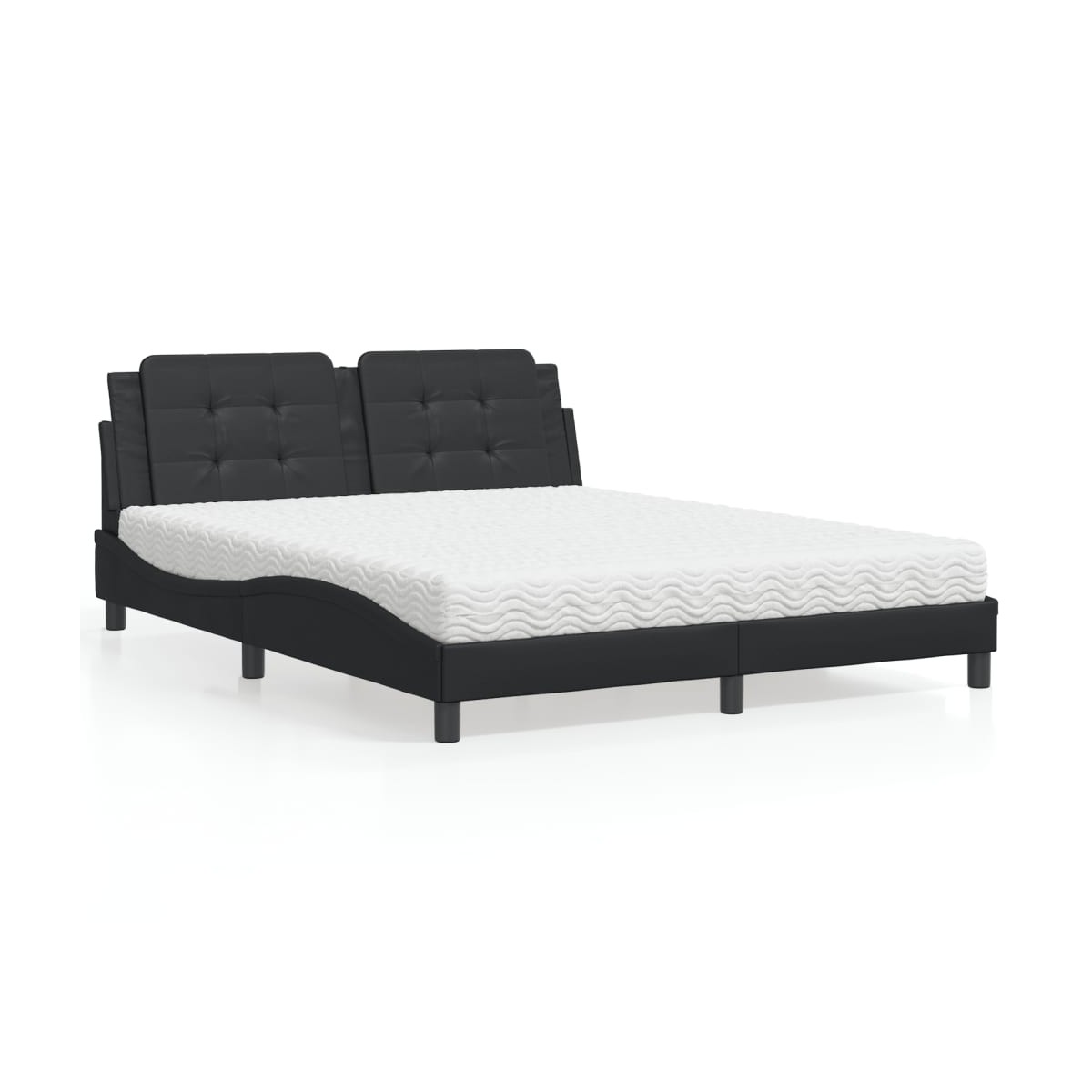 ¡Consigue tener un sueño más reparador en esta cama con colchón! Es un aporte acogedor para cualquier dormitorio. Material duradero: El cuero sintético de primera calidad es un material muy duradero. Es resistente a las manchas, por lo que es fácil de limpiar con un paño húmedo. Además, la superficie lisa da un aspecto lujoso y la belleza del cuero auténtico. Listones robustos: Los listones de madera contrachapada proporcionan una buena distribución del peso, lo que garantiza que el colchón se mantenga en tu sitio con cada giro y vuelta del cuerpo mientras duermes. Excelente soporte: El cabecero acolchado está relleno de espuma para una comodidad ultrasuave y óptima, lo que te brinda un excelente soporte para la espalda mientras estás sentado en la cama para leer o ver la televisión. Colchón de espuma: Este colchón de cama de tela de 3 capas está relleno de espuma de PU 22D para ofrecer un confort óptimo. Alivia el cansancio y favorece la circulación sanguínea, con el fin de ofrecerte una relajación completa y una buena calidad de sueño. Además, el colchón está disponible en dureza H2 y H3, por lo que solo tienes que girarlo para elegir la dureza que más te convenga. Diseño lateral ondulado: El look ondulado de la estructura de la cama es elegante y sofisticado, agregando un toque moderno y elegante a tu decoración, convirtiéndolo en el foco de atención de tu dormitorio.