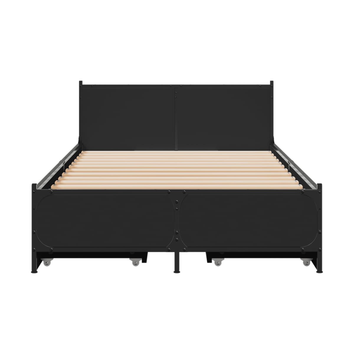 ¡Consigue un sueño más reparador con esta estructura de cama con cajones! Es un aporte acogedor para cualquier dormitorio. Material duradero: La madera de ingeniería tiene una calidad excepcional, con una superficie lisa y también cuenta con fuerza, estabilidad y resistencia a la humedad. Patas de metal: La cama se apoya en robustas patas metálicas, que garantizan su estabilidad, seguridad y firmeza. Listones robustos: Los listones de madera contrachapada proporcionan una buena distribución del peso, lo que garantiza que el colchón se mantenga en tu sitio con cada giro y vuelta del cuerpo mientras duermes. Función de almacenaje: Los cajones de cama incluidos proporcionan amplio espacio de almacenamiento para guardar cosas básicas, y mantienen la habitación limpia y ordenada. Información útil:El colchón no está incluido con la cama. Disponemos de una variada selección de colchones. Puedes echar un vistazo a nuestra tienda para buscar el colchón correspondiente.