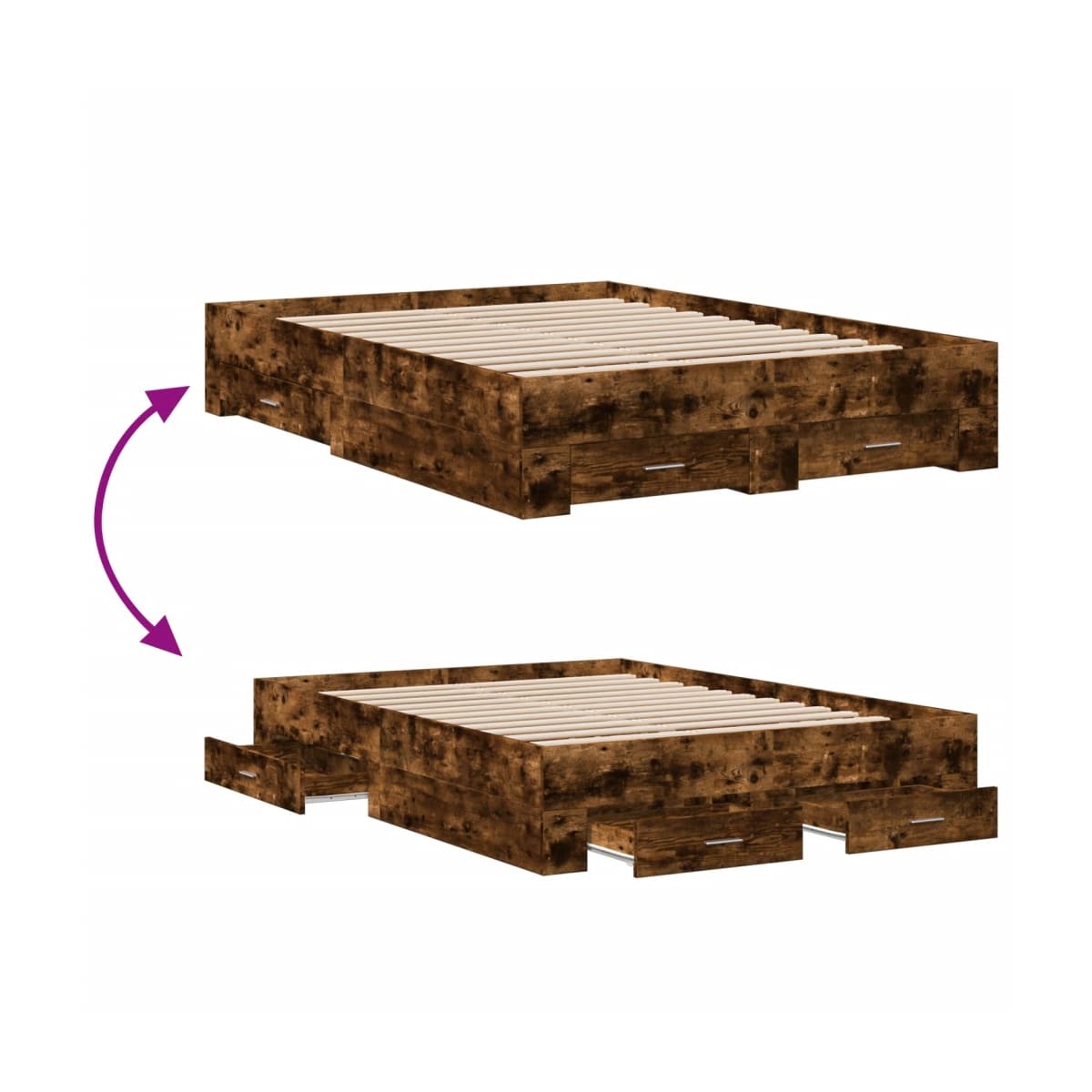 ¡Añade un toque moderno a tu dormitorio con esta estructura de cama con cajones! Es un aporte práctico y decorativo para tu hogar. Material duradero: La estructura de la cama está hecha de madera de ingeniería. La madera de ingeniería tiene una calidad excepcional, con una superficie lisa y también con fuerza, estabilidad y resistencia a la humedad.Listones robustos: Los listones de madera contrachapada proporcionan una buena distribución del peso, lo que garantiza que el colchón se mantenga en tu sitio con cada giro y vuelta del cuerpo mientras duermes.Función de almacenaje: Los cajones de cama incluidos proporcionan amplio espacio de almacenamiento para guardar cosas básicas, y mantienen la habitación limpia y ordenada. Información útil:El colchón no está incluido con la cama. Disponemos de una variada selección de colchones. Puedes echar un vistazo a nuestra tienda para buscar el colchón correspondiente.