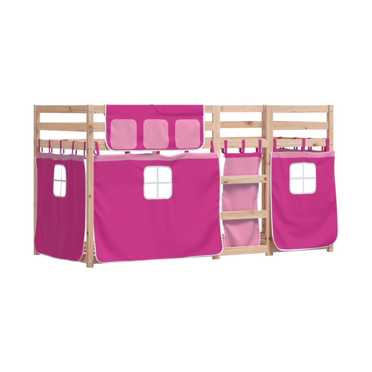 Esta litera de madera es elegante y funcional, por lo que es un aporte perfecto para cualquier habitación con espacio limitado. Madera maciza de pino: Esta litera está hecha de madera de pino maciza para mayor estabilidad y durabilidad. La madera de pino tiene un grano recto, y los nudos dan al material su firma, aspecto rústico.Mucha diversión: Puedes combinar las cortinas con la litera baja para crear la base secreta para tu hijo. ¡La hora de dormir será un juego y la cama será el centro de atención del dormitorio!Barandillas de seguridad: La litera superior cuenta con barandillas de seguridad en los 4 lados, para que tu hijo pueda dormir sin preocuparse por si se cae.Cómoda escalera: Esta litera doble tiene una escalera que proporciona comodidad para subir y bajar de la cama. También aporta alegría y convierte la habitación en un parque infantil interior. Información útil:El colchón no está incluido con la cama. Disponemos de una variada selección de colchones. Puedes echar un vistazo a nuestra tienda para buscar el colchón correspondiente. Advertencia:Para evitar que vuelque, este producto debe usarse con el dispositivo de fijación a la pared suministrado.