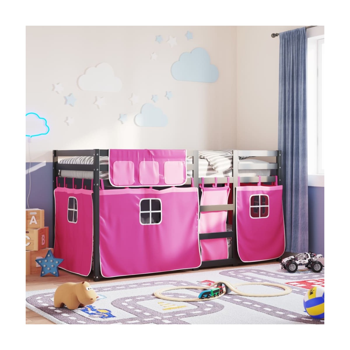 Esta litera de madera es elegante y funcional, por lo que es un aporte perfecto para cualquier habitación con espacio limitado. Madera maciza de pino: Esta litera está hecha de madera de pino maciza para mayor estabilidad y durabilidad. La madera de pino tiene un grano recto, y los nudos dan al material su firma, aspecto rústico.Mucha diversión: Puedes combinar las cortinas con la litera baja para crear la base secreta para tu hijo. ¡La hora de dormir será un juego y la cama será el centro de atención del dormitorio!Barandillas de seguridad: La litera superior cuenta con barandillas de seguridad en los 4 lados, para que tu hijo pueda dormir sin preocuparse por si se cae.Cómoda escalera: Esta litera doble tiene una escalera que proporciona comodidad para subir y bajar de la cama. También aporta alegría y convierte la habitación en un parque infantil interior. Información útil:El colchón no está incluido con la cama. Disponemos de una variada selección de colchones. Puedes echar un vistazo a nuestra tienda para buscar el colchón correspondiente. Advertencia:Para evitar que vuelque, este producto debe usarse con el dispositivo de fijación a la pared suministrado.