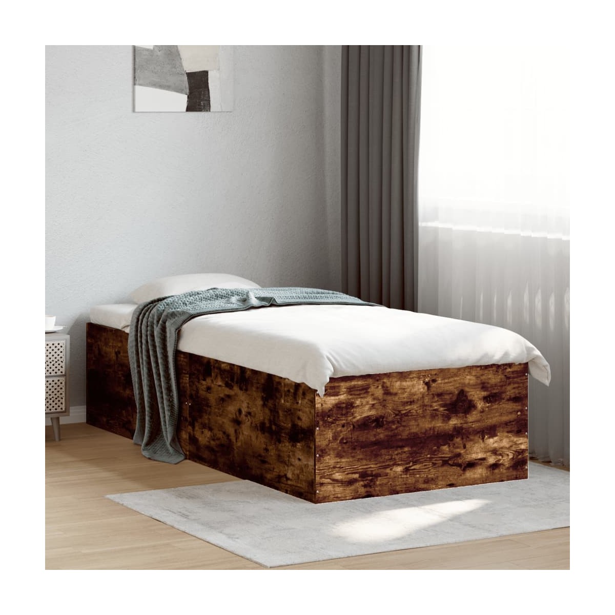 Consigue un sueño más reparador con esta estructura de cama. Es un aporte acogedor para cualquier dormitorio. Material duradero: La madera de ingeniería tiene una calidad excepcional, con una superficie lisa y también cuenta con fuerza, estabilidad y resistencia a la humedad.Listones para un soporte óptimo: El somier se completa con listones para ofrecer un soporte esencial y transpirabilidad a tu colchón.Diseño moderno: ¡Da un estilo moderno a tu casa! El moderno diseño posee líneas limpias, aspectos minimalistas y luz natural como parte del estilo de interiorismo. Información útil:El colchón no está incluido con la cama. Disponemos de una variada selección de colchones. Puedes echar un vistazo a nuestra tienda para buscar el colchón correspondiente.