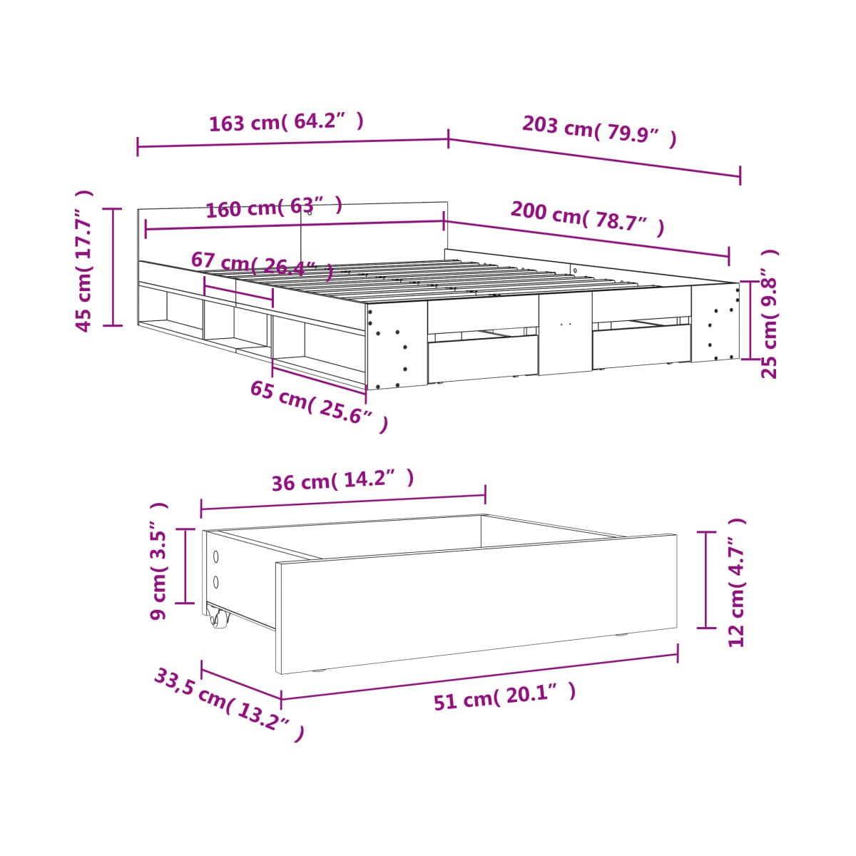 - Dimensiones de los cajones de la cama (cada uno): 51 x 33,5 x 12 cm (largo x ancho x alto)