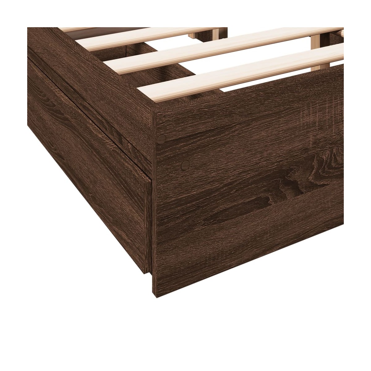 ¡Añade un toque moderno a tu dormitorio con esta estructura de cama con cajones! Es un aporte práctico y decorativo para tu hogar. Material duradero: La estructura de la cama está hecha de madera de ingeniería. La madera de ingeniería tiene una calidad excepcional, con una superficie lisa y también con fuerza, estabilidad y resistencia a la humedad.Listones robustos: Los listones de madera contrachapada proporcionan una buena distribución del peso, lo que garantiza que el colchón se mantenga en tu sitio con cada giro y vuelta del cuerpo mientras duermes.Función de almacenaje: Los cajones de cama incluidos proporcionan amplio espacio de almacenamiento para guardar cosas básicas, y mantienen la habitación limpia y ordenada. Información útil:El colchón no está incluido con la cama. Disponemos de una variada selección de colchones. Puedes echar un vistazo a nuestra tienda para buscar el colchón correspondiente.