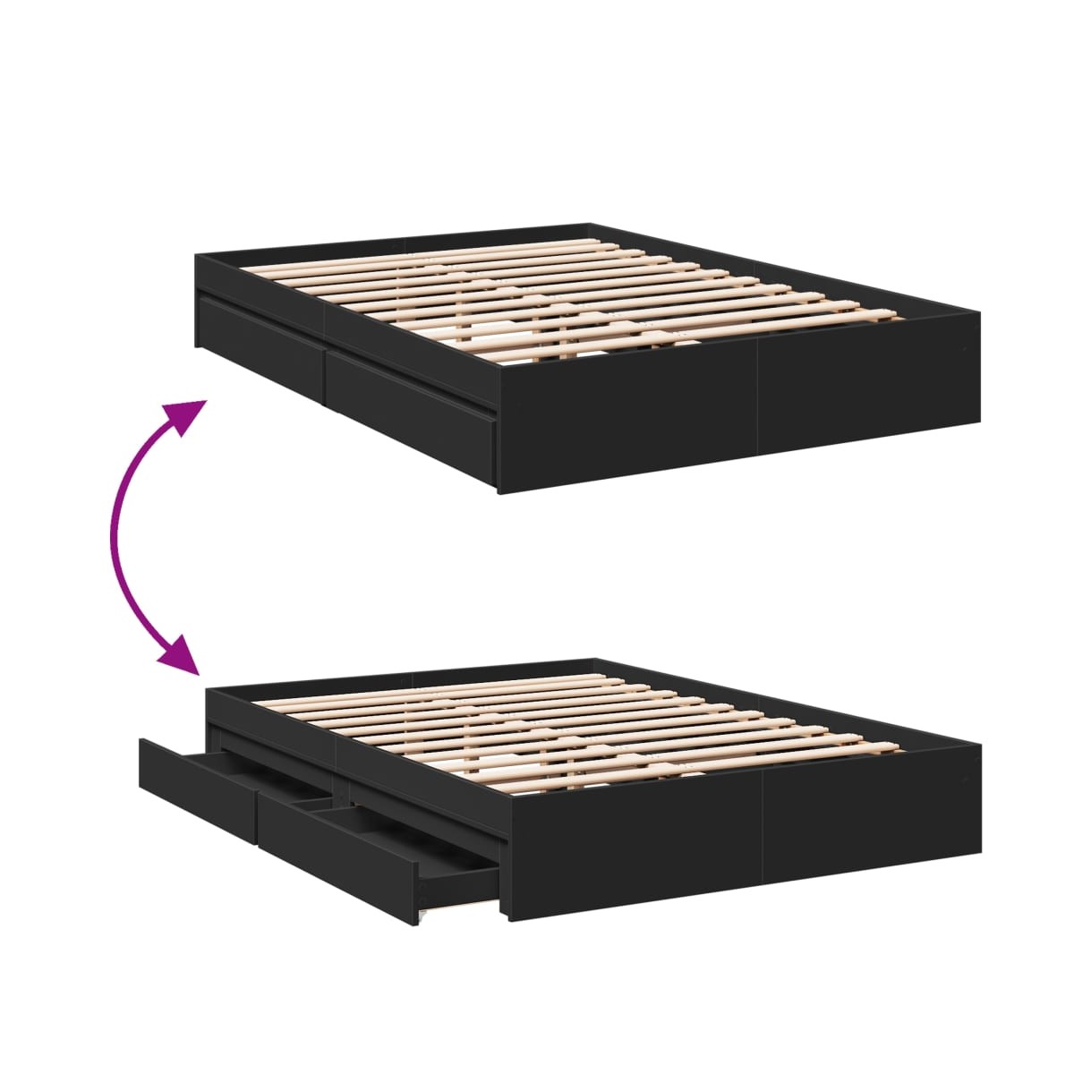 ¡Añade un toque moderno a tu dormitorio con esta estructura de cama con cajones! Es un aporte práctico y decorativo para tu hogar. Material duradero: La estructura de la cama está hecha de madera de ingeniería. La madera de ingeniería tiene una calidad excepcional, con una superficie lisa y también con fuerza, estabilidad y resistencia a la humedad.Listones robustos: Los listones de madera contrachapada proporcionan una buena distribución del peso, lo que garantiza que el colchón se mantenga en tu sitio con cada giro y vuelta del cuerpo mientras duermes.Función de almacenaje: Los cajones de cama incluidos proporcionan amplio espacio de almacenamiento para guardar cosas básicas, y mantienen la habitación limpia y ordenada. Información útil:El colchón no está incluido con la cama. Disponemos de una variada selección de colchones. Puedes echar un vistazo a nuestra tienda para buscar el colchón correspondiente.