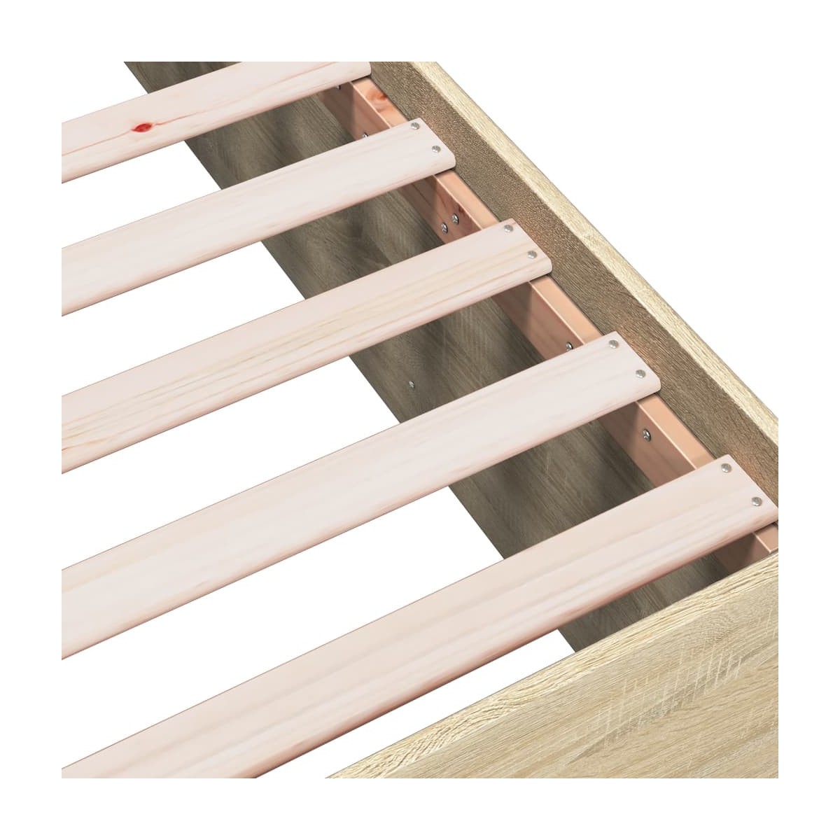 Consigue un sueño más reparador con esta estructura de cama. Es un aporte acogedor para cualquier dormitorio. Material duradero: La madera de ingeniería tiene una calidad excepcional, con una superficie lisa y también cuenta con fuerza, estabilidad y resistencia a la humedad.Listones para un soporte óptimo: El somier se completa con listones para ofrecer un soporte esencial y transpirabilidad a tu colchón.Diseño moderno: ¡Da un estilo moderno a tu casa! El moderno diseño posee líneas limpias, aspectos minimalistas y luz natural como parte del estilo de interiorismo. Información útil:El colchón no está incluido con la cama. Disponemos de una variada selección de colchones. Puedes echar un vistazo a nuestra tienda para buscar el colchón correspondiente.