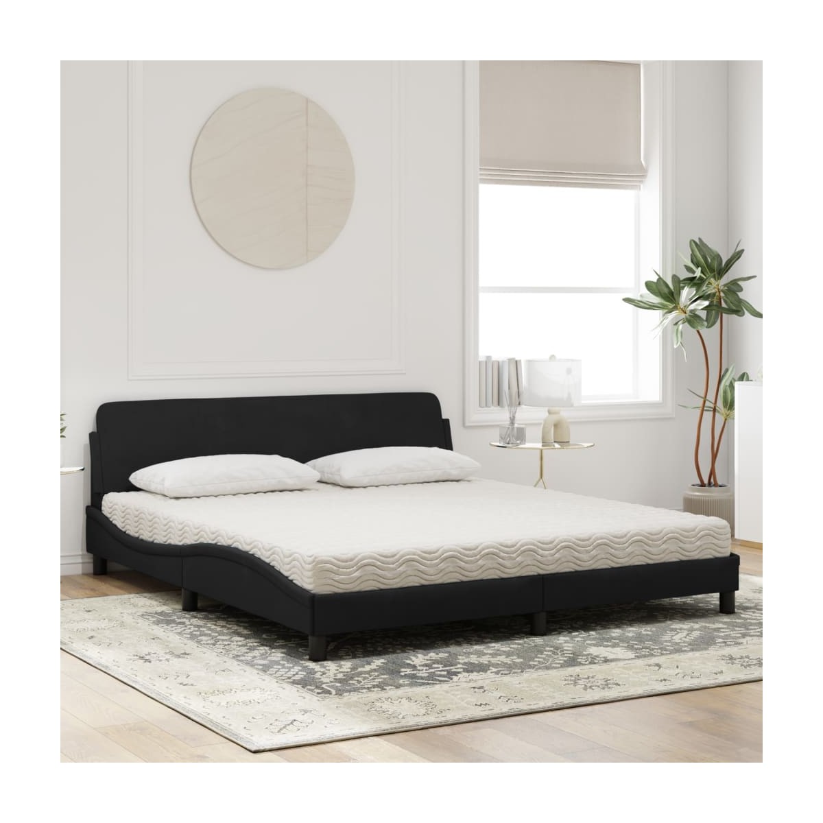 ¡Consigue tener un sueño más reparador en esta cama con colchón! Es un aporte acogedor para cualquier dormitorio. Terciopelo suave: El terciopelo es una tela suave y cálida, agradable al tacto.Listones robustos: Los listones de madera contrachapada proporcionan una buena distribución del peso, lo que garantiza que el colchón se mantenga en tu sitio con cada giro y vuelta del cuerpo mientras duermes.Excelente apoyo: El cabecero de la cama te proporciona un excelente apoyo para la espalda mientras estás sentado en la cama para leer o ver la televisión.Colchón de espuma: Este colchón de cama de tela de 3 capas está relleno de espuma de PU 22D para ofrecer un confort óptimo. Alivia el cansancio y favorece la circulación sanguínea, con el fin de ofrecerte una relajación completa y una buena calidad de sueño. Además, el colchón está disponible en dureza H2 y H3, por lo que solo tienes que girarlo para elegir la dureza que más te convenga.Diseño lateral ondulado: El look ondulado de la estructura de la cama es elegante y sofisticado, agregando un toque moderno y elegante a tu decoración, convirtiéndolo en el foco de atención de tu dormitorio.