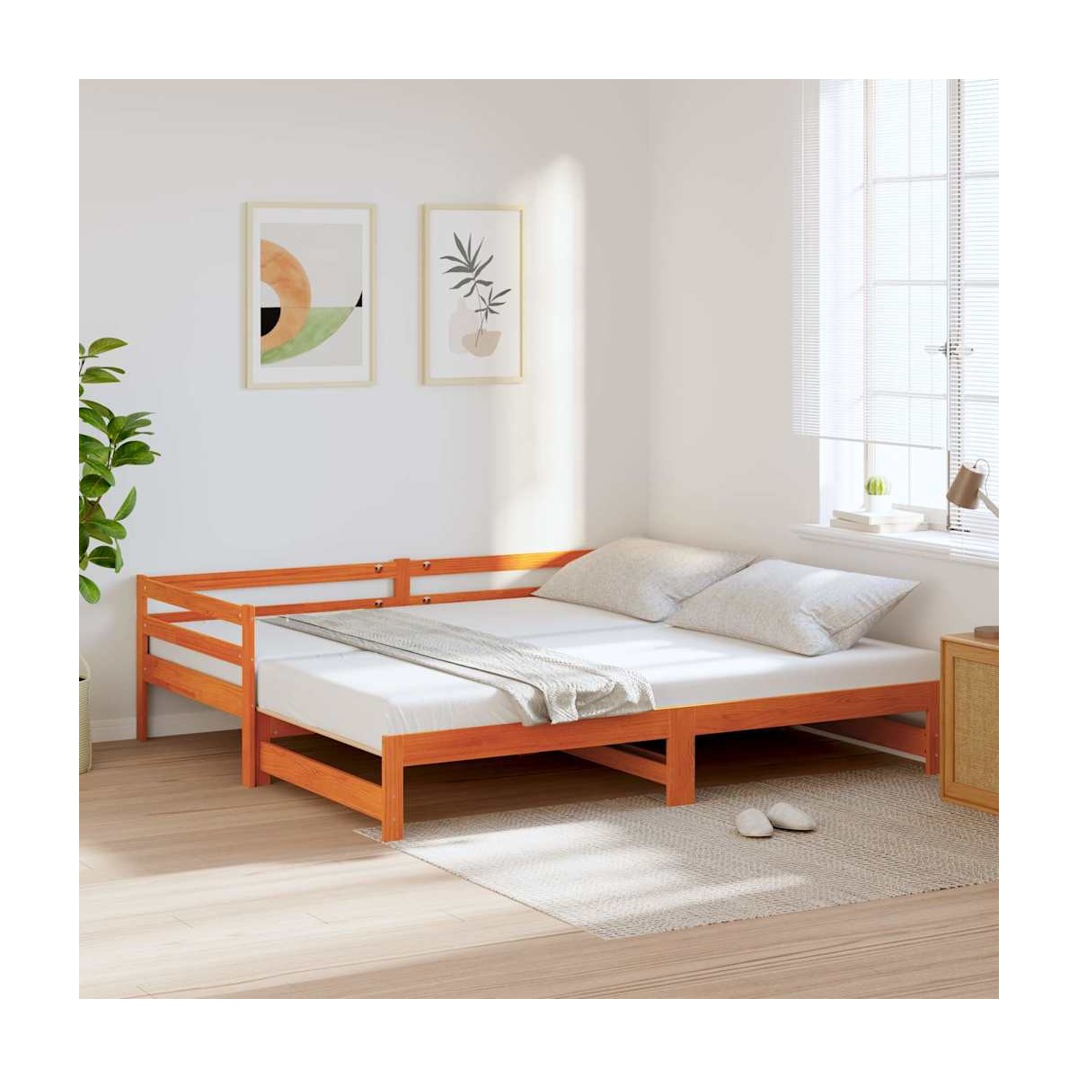 Este sofá cama 2 en 1 con cama nido, que sirve como sofá y cama, es un complemento práctico y llamativo para tu salón o dormitorio. Estructura estable y duradera: La madera de pino maciza es conocida por su resistencia y durabilidad. Sus vetas rectas y sus característicos nudos contribuyen a su encanto rústico.Listones para un soporte óptimo: El somier se completa con listones para ofrecer un soporte esencial y transpirabilidad a tu colchón.Sofá cama versátil: El sofá cama funciona como sofá durante el día y se convierte fácilmente en una cama doble por la noche sacando la cama nido, lo que proporciona una solución práctica para recibir invitados y maximizar el espacio.Espacio de almacenamiento adicional: Para mayor comodidad, la cama dispone de un espacio debajo para guardar tus cajas de almacenaje y que no se vean. Información útil:El colchón no está incluido con la cama. Disponemos de una variada selección de colchones. Puedes echar un vistazo a nuestra tienda para buscar el colchón correspondiente.