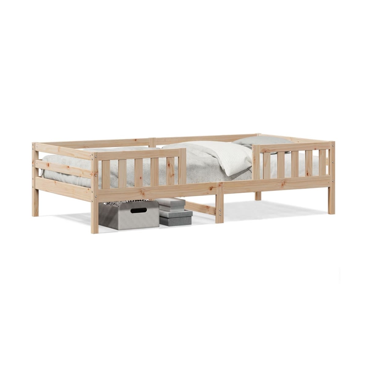 ¡Añade un toque moderno a tu dormitorio con esta estructura de cama! Es un aporte práctico y decorativo para tu hogar. Estructura estable y duradera: La madera de pino maciza es conocida por su resistencia y durabilidad. Sus vetas rectas y sus característicos nudos contribuyen a su encanto rústico.Listones robustos: Los listones de madera contrachapada proporcionan una buena distribución del peso, lo que garantiza que el colchón se mantenga en tu sitio con cada giro y vuelta del cuerpo mientras duermes.Diseño moderno: ¡Da un estilo moderno a tu casa! El moderno diseño posee líneas limpias, aspectos minimalistas y luz natural como parte del estilo de interiorismo. Información útil:El colchón no está incluido con la cama. Disponemos de una variada selección de colchones. Puedes echar un vistazo a nuestra tienda para buscar el colchón correspondiente.