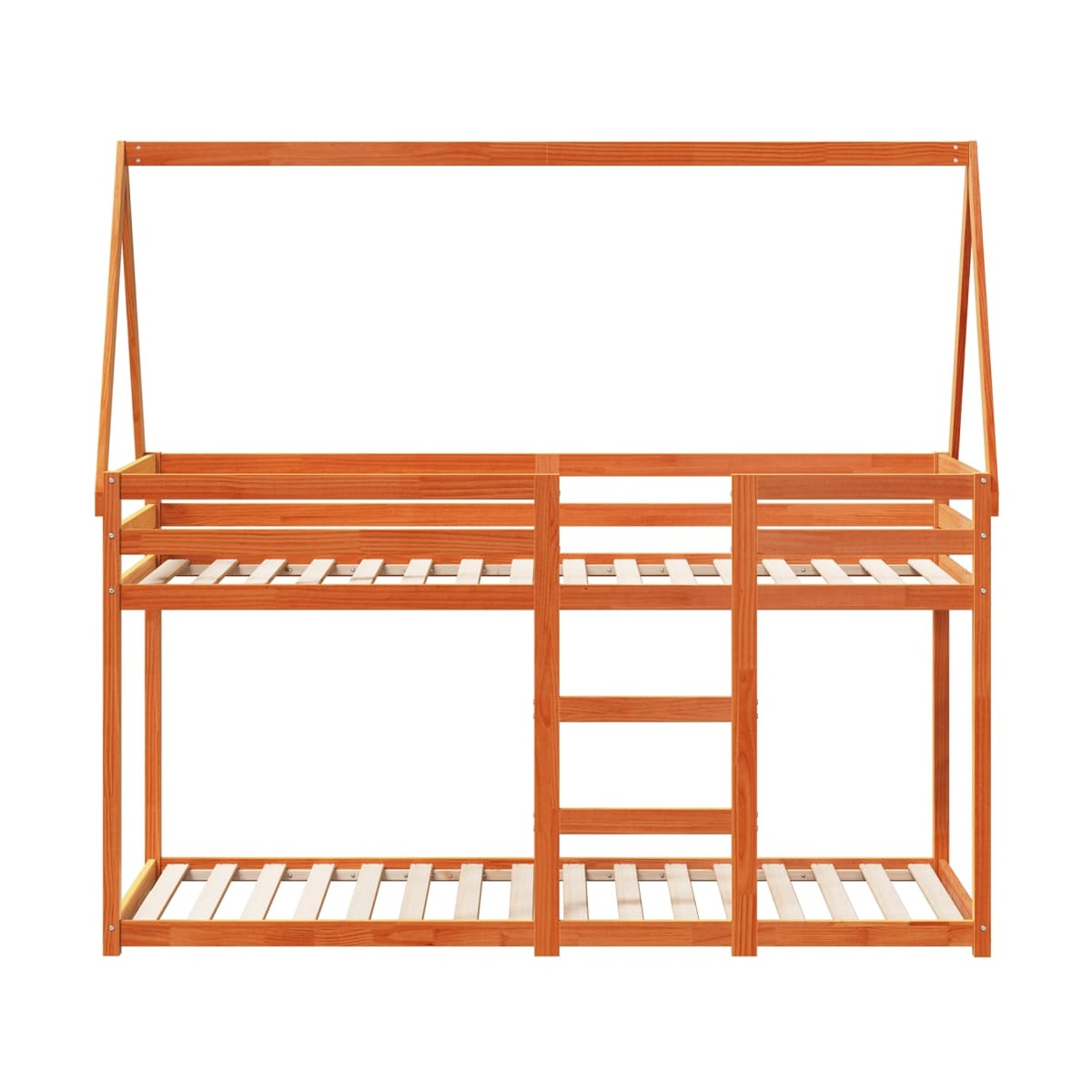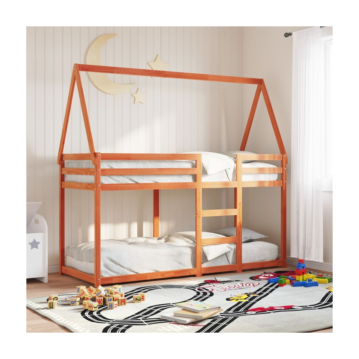 Esta litera infantil con techo es elegante y funcional, por lo que es un aporte perfecto para cualquier habitación con espacio limitado. Madera de pino maciza: La madera de pino maciza es un bonito material natural. La madera de pino tiene vetas rectas, y los nudos dan al material su distintivo aspecto rústico.Diseño seguro: La cama alta está diseñada pensando en la seguridad. Cuenta con barandillas para evitar que el usuario salga rodando mientras duerme.Listones robustos: Los listones de madera contrachapada proporcionan una buena distribución del peso, lo que garantiza que el colchón se mantenga en tu sitio con cada giro y vuelta del cuerpo mientras duermes.Gran diversión: Al combinar el techo con la cama de tu hijo, puedes crear un escondite que le ofrezca a tu hijo mucha diversión a la hora de acostarse. Este innovador añadido al cuarto no solo será un punto emocionante, sino que también traerá asombro y emoción a la habitación de los niños.Adecuado para espacios limitados: La estructura de cama es una excelente opción para cualquier habitación con espacio limitado, ya que proporciona dos camas individuales con un diseño compacto.Puerta lateral abierta: El techo cuenta con una puerta lateral abierta, lo que facilita el acceso para que tus hijos entren y salgan de la cama. Información útil:El colchón no está incluido con la cama. Disponemos de una variada selección de colchones. Puedes echar un vistazo a nuestra tienda para buscar el colchón correspondiente.