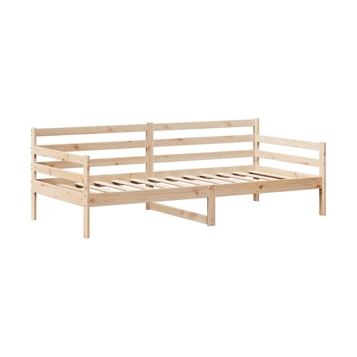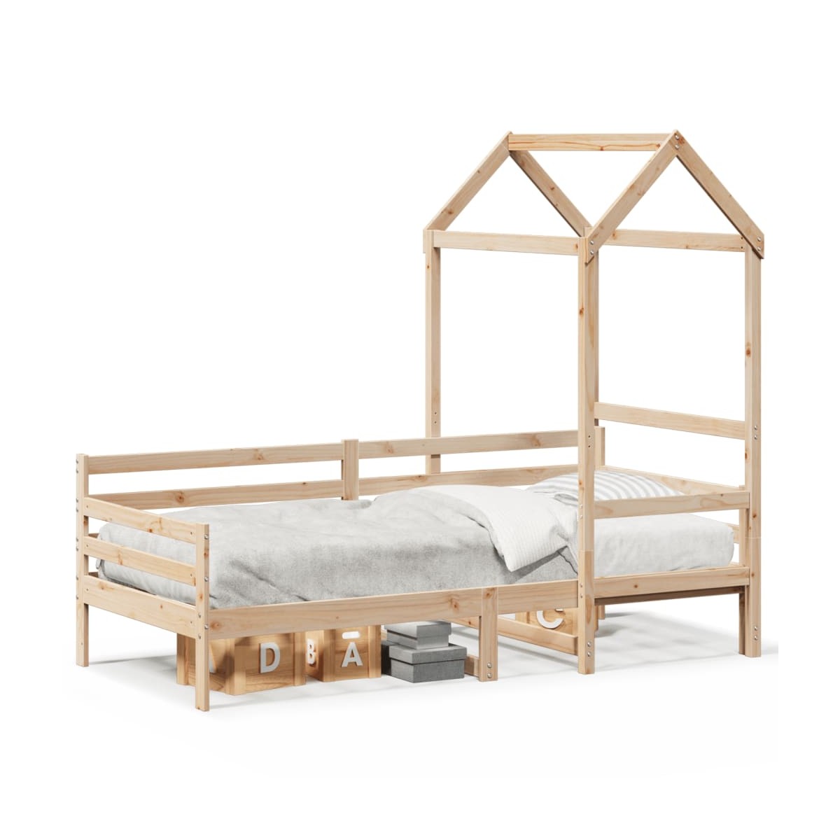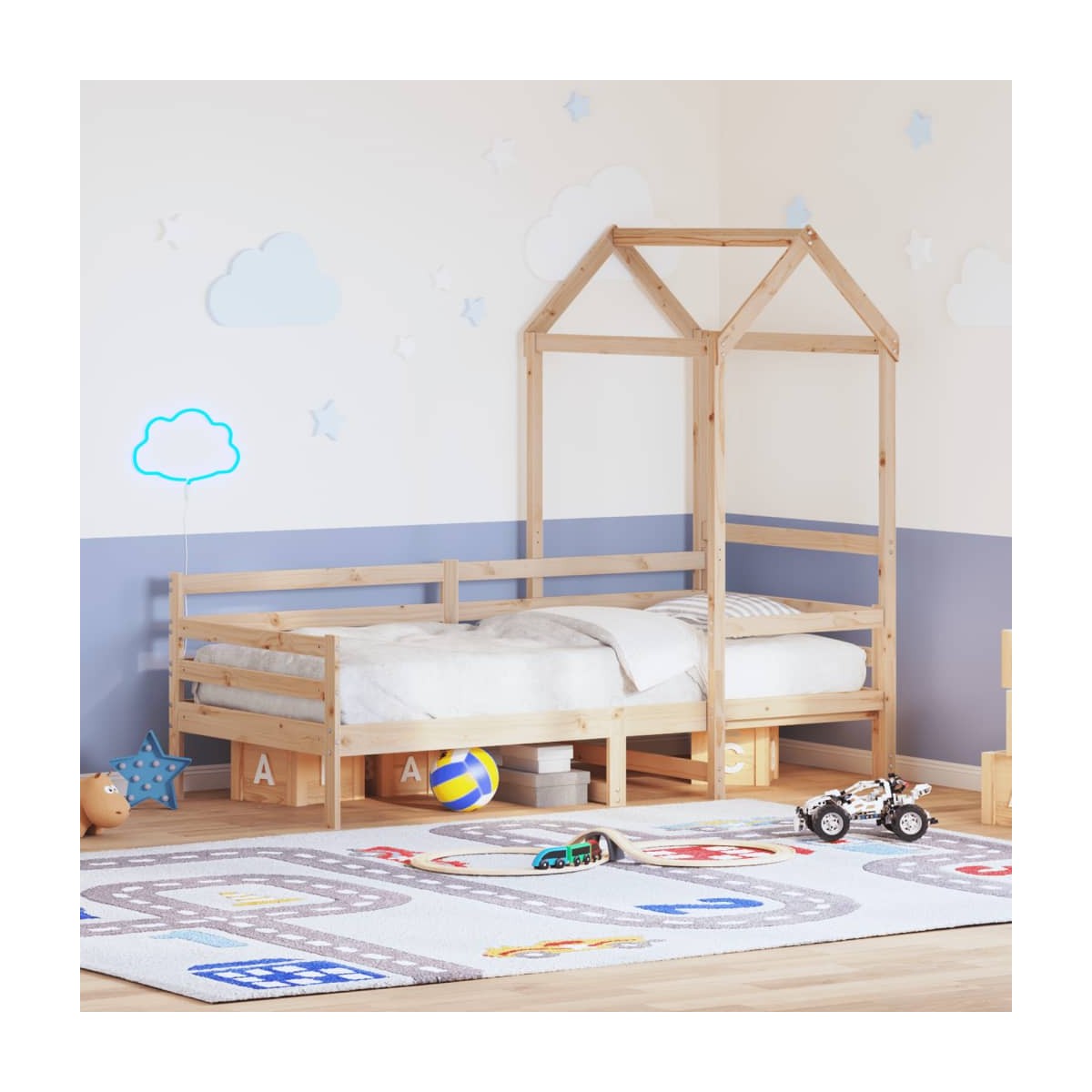 Este versátil sofá cama de madera se puede usar como cama en el dormitorio y también encaja a la perfección como sofá en el salón. Se adapta perfectamente a tus diferentes necesidades, lo que te proporciona mucho espacio para dormir y descansar. Madera de pino maciza: La madera de pino maciza es un bonito material natural. La madera de pino tiene vetas rectas, y los nudos dan al material su distintivo aspecto rústico.Barras de cama de 3 lados: Esta cama tiene un diseño único en el lateral de la cama, que proporciona una sensación de seguridad y además añade un toque de estilo sofisticado a tu hogar.Diseño de listones: El somier de madera proporciona una mejor circulación del aire para mantener el colchón fresco durante más tiempo, además de mejorar la capacidad de carga de la cama y de asegurar su estabilidad.Espacio de almacenamiento adicional: Aprovecha al máximo el espacio que hay debajo de la cama para guardar varios objetos. Ideal para guardar cajas para organizar tu ropa, juguetes o edredones.Gran diversión: Al combinar el techo con tu sofá cama, puedes crear un escondite que le ofrezca a tu hijo mucha diversión a la hora de acostarse. Este innovador añadido al cuarto no solo será un punto emocionante, sino que también traerá asombro y emoción a la habitación.Puerta lateral abierta: El techo cuenta con una puerta lateral abierta, lo que facilita el acceso para que tus hijos entren y salgan de la cama. Información útil:El colchón no está incluido con la cama. Disponemos de una variada selección de colchones. Puedes echar un vistazo a nuestra tienda para buscar el colchón correspondiente.