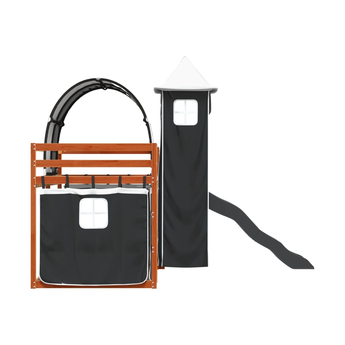 Esta litera de madera es elegante y funcional, por lo que es un aporte perfecto para cualquier habitación con espacio limitado. Madera maciza de pino: Esta litera está hecha de madera de pino maciza para mayor estabilidad y durabilidad. La madera de pino tiene un grano recto, y los nudos dan al material su firma, aspecto rústico.Mucha diversión: Puedes combinar las cortinas con la litera baja para crear la base secreta para tu hijo. ¡La hora de dormir será un juego y la cama será el centro de atención del dormitorio!Barandillas de seguridad: La litera superior cuenta con barandillas de seguridad en los 4 lados, para que tu hijo pueda dormir sin preocuparse por si se cae.Cómoda escalera y tobogán: Esta litera doble tiene un divertido tobogán que aporta alegría y convierte la habitación en un patio de recreo interior. La combinación de una escalera y un tobogán hace que la hora de acostarse sea más animada e interesante para los niños.Listones robustos: Los listones de madera contrachapada proporcionan una buena distribución del peso, lo que garantiza que el colchón se mantenga en tu sitio con cada giro y vuelta del cuerpo mientras duermes. Información útil:El colchón no está incluido con la cama. Disponemos de una variada selección de colchones. Puedes echar un vistazo a nuestra tienda para buscar el colchón correspondiente. Advertencia:Para evitar que vuelque, este producto debe usarse con el dispositivo de fijación a la pared suministrado.