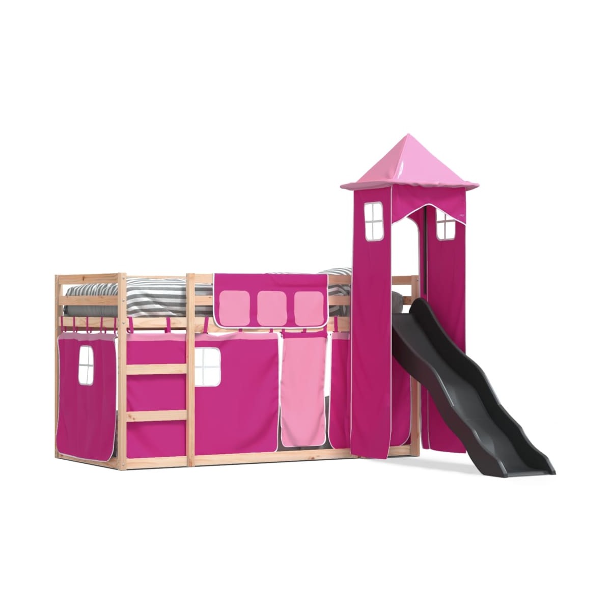Esta litera de madera es elegante y funcional, por lo que es un aporte perfecto para cualquier habitación con espacio limitado. Madera maciza de pino: Esta litera está hecha de madera de pino maciza para mayor estabilidad y durabilidad. La madera de pino tiene un grano recto, y los nudos dan al material su firma, aspecto rústico.Mucha diversión: Puedes combinar las cortinas con la litera baja para crear la base secreta para tu hijo. ¡La hora de dormir será un juego y la cama será el centro de atención del dormitorio!Barandillas de seguridad: La litera superior cuenta con barandillas de seguridad en los 4 lados, para que tu hijo pueda dormir sin preocuparse por si se cae.Cómoda escalera y tobogán: Esta litera doble tiene un divertido tobogán que aporta alegría y convierte la habitación en un patio de recreo interior. La combinación de una escalera y un tobogán hace que la hora de acostarse sea más animada e interesante para los niños.Listones robustos: Los listones de madera contrachapada proporcionan una buena distribución del peso, lo que garantiza que el colchón se mantenga en tu sitio con cada giro y vuelta del cuerpo mientras duermes. Información útil:El colchón no está incluido con la cama. Disponemos de una variada selección de colchones. Puedes echar un vistazo a nuestra tienda para buscar el colchón correspondiente. Advertencia:Para evitar que vuelque, este producto debe usarse con el dispositivo de fijación a la pared suministrado.