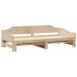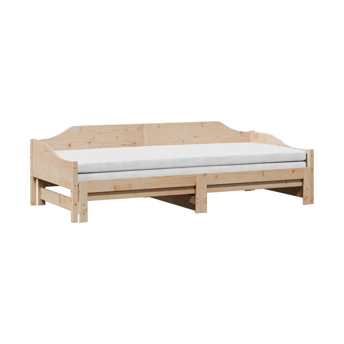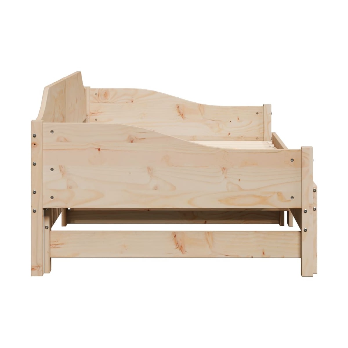 Este sofá cama 2 en 1 con cama nido, que sirve como sofá y cama, es un complemento práctico y llamativo para tu salón o dormitorio. Estructura estable y duradera: La madera de pino maciza es conocida por su resistencia y durabilidad. Sus vetas rectas y sus característicos nudos contribuyen a su encanto rústico.Listones para un soporte óptimo: El sofá cama se completa con listones para ofrecer un soporte esencial y transpirabilidad a tu colchón.Sofá cama versátil: El sofá cama funciona como sofá durante el día y se convierte fácilmente en una cama doble por la noche sacando la cama nido, lo que proporciona una solución práctica para recibir invitados y maximizar el espacio.Espacio de almacenamiento adicional: Para mayor comodidad, la cama dispone de un espacio debajo para guardar tus cajas de almacenaje y que no se vean. Información útil:El colchón no está incluido con la cama. Ofrecemos una variada selección de colchones. Puedes echar un vistazo a nuestra tienda para buscar el correspondiente colchón.
