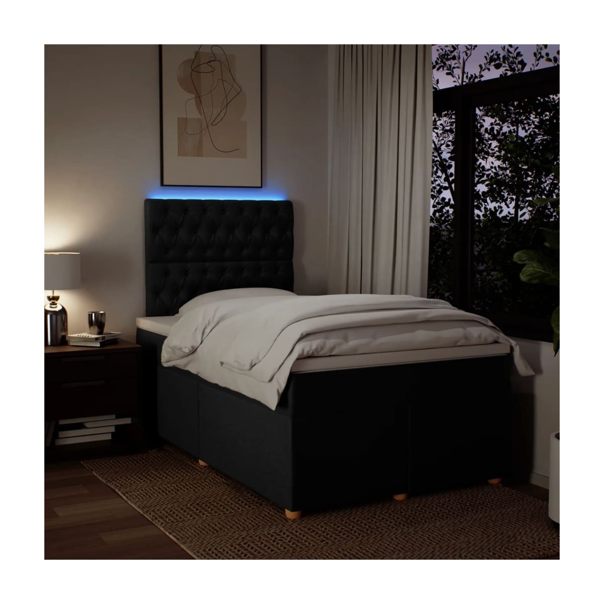 Utiliza esta cama de muelles para disfrutar de un sueño reparador. Te ofrece la máxima relajación y un sueño placentero. Material suave y duradero: El tejido de poliéster combina suavidad, transpirabilidad y durabilidad, lo que garantiza que experimentes la máxima comodidad. Colchón de muelles ensacados: Este colchón de muelles ensacados cuenta con muelles ensacados individuales que funcionan de forma independiente para proporcionar un apoyo personalizado reaccionando únicamente a la presión de cada zona. Este diseño evita que se enrolle y reduce la transferencia de movimiento en comparación con los colchones tradicionales de bobina abierta. Cada muelle ensacado sostiene el cuerpo individualmente. Luces LED para un ambiente agradable: Esta cama cuenta con luces LED que se pueden ajustar fácilmente para crear un espectáculo de luces personalizado. Puedes personalizar los modos, los colores y el brillo para mejorar el ambiente de tu espacio interior. Cabecero regulable en altura: El cabecero es ajustable en altura para adaptarse a tus preferencias. Cubrecolchón cómodo: Este cubrecolchón mejora el soporte y la comodidad con su superficie suave y transpirable al tiempo que prolonga la vida útil de su colchón. Su funda extraíble permite un fácil lavado, lo que facilita el mantenimiento. Información útil:El producto tiene un conector USB que necesita una fuente de alimentación USB certificada de 5 V (no incluida). Por razones de higiene, el colchón no puede devolverse si se ha quitado o abierto el embalaje. Únicamente puedes cortar por la parte con el símbolo de las tijeras y únicamente la parte con el USB seguirá funcionando como antes.