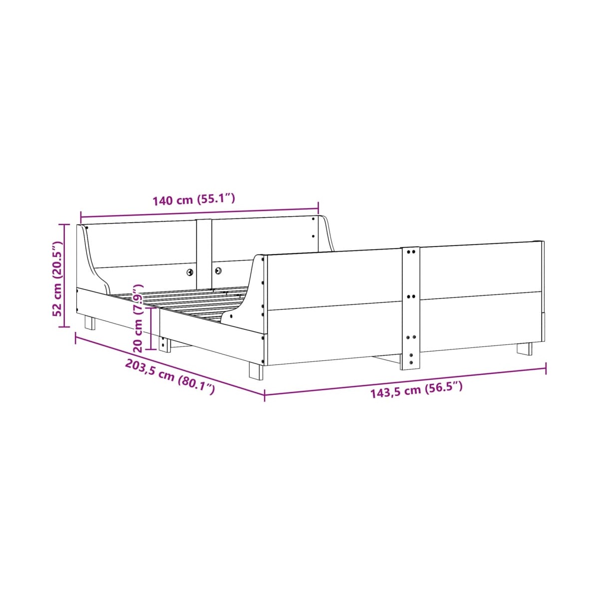- Dimensiones de colchón compatible: 140 x 200 cm (ancho x largo) (colchón no incluido)