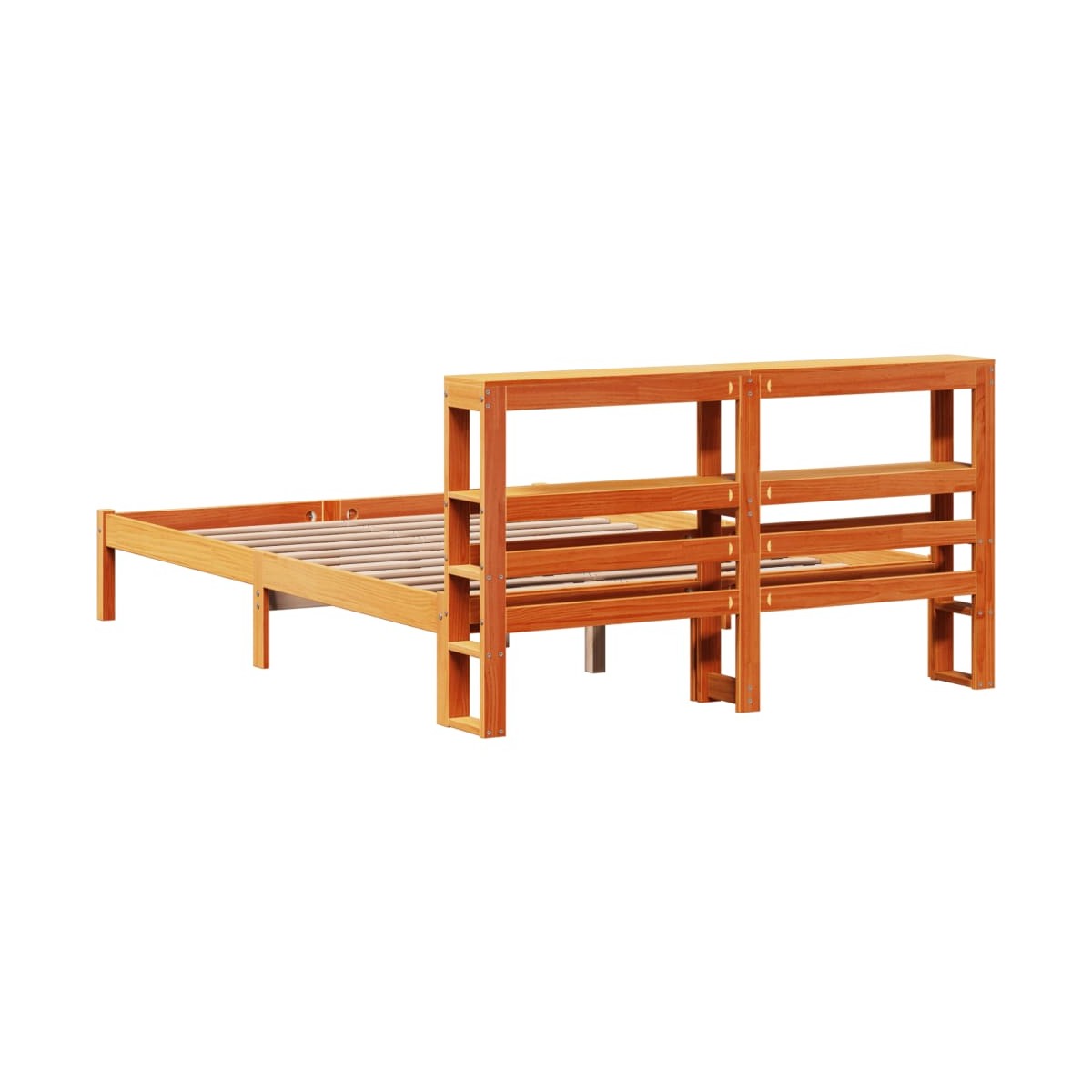 ¡Disfruta de una buena noche de sueño en esta estructura de cama de madera! Es un aporte práctico y decorativo para la casa. Madera de pino maciza: La madera de pino maciza es un bonito material natural. La madera de pino tiene vetas rectas, y los nudos dan al material su distintivo aspecto rústico.Estructura de cama estable: La estructura de madera garantiza su solidez y estabilidad.Listones robustos: Los listones de madera contrachapada proporcionan una buena distribución del peso, lo que garantiza que el colchón se mantenga en tu sitio con cada giro y vuelta del cuerpo mientras duermes.Amplio espacio de almacenamiento: Este elegante cabecero cuenta con dos prácticos estantes, que ofrecen un amplio espacio de almacenamiento para tener todos tus artículos esenciales para la noche al alcance de la mano. Información útil:El colchón no está incluido con la cama. Disponemos de una variada selección de colchones. Puedes echar un vistazo a nuestra tienda para buscar el colchón correspondiente.