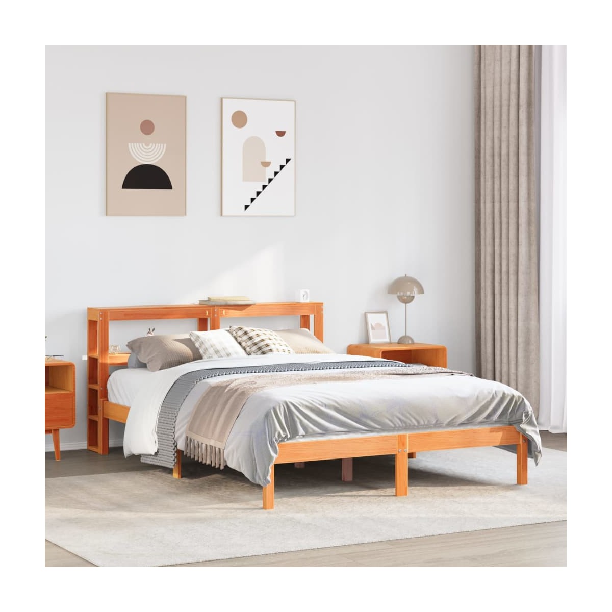 ¡Disfruta de una buena noche de sueño en esta estructura de cama de madera! Es un aporte práctico y decorativo para la casa. Madera de pino maciza: La madera de pino maciza es un bonito material natural. La madera de pino tiene vetas rectas, y los nudos dan al material su distintivo aspecto rústico.Estructura de cama estable: La estructura de madera garantiza su solidez y estabilidad.Listones robustos: Los listones de madera contrachapada proporcionan una buena distribución del peso, lo que garantiza que el colchón se mantenga en tu sitio con cada giro y vuelta del cuerpo mientras duermes.Amplio espacio de almacenamiento: Este elegante cabecero cuenta con dos prácticos estantes, que ofrecen un amplio espacio de almacenamiento para tener todos tus artículos esenciales para la noche al alcance de la mano. Información útil:El colchón no está incluido con la cama. Disponemos de una variada selección de colchones. Puedes echar un vistazo a nuestra tienda para buscar el colchón correspondiente.