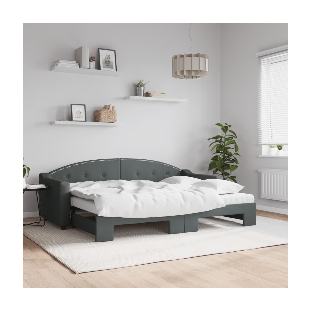 Este sofá cama 2 en 1 con cama nido, que sirve como sofá y cama, es un complemento práctico y llamativo para tu salón o dormitorio. Sofá cama versátil: El sofá cama funciona como sofá durante el día y se convierte fácilmente en una cama doble por la noche sacando la cama nido, lo que proporciona una solución práctica para recibir invitados y maximizar el espacio. Cómodo colchón de espuma: Esta cama se suministra con dos colchones de espuma para un máximo apoyo y una comodidad óptima. Tela duradera y construcción sólida: Este sofá cama tiene una estructura resistente hecha de madera y metal y está tapizado con una tela duradera y cómoda.