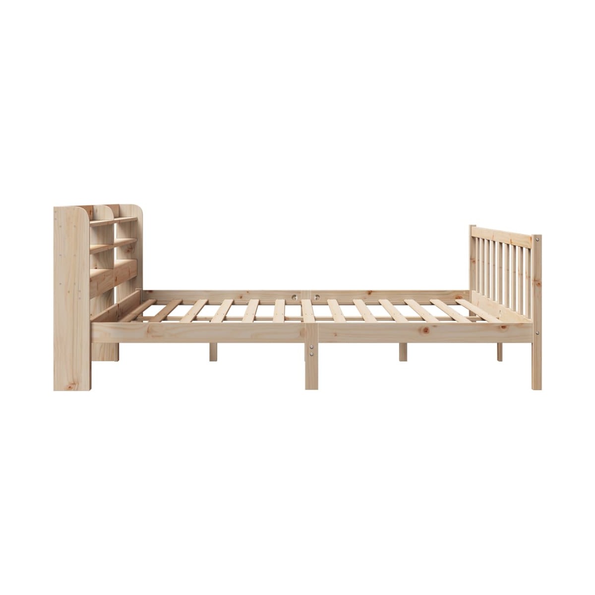 ¡Disfruta de una buena noche de sueño en esta estructura de cama de madera! Es un aporte práctico y decorativo para la casa. Madera de pino maciza: La madera de pino maciza es un bonito material natural. La madera de pino tiene vetas rectas, y los nudos dan al material su distintivo aspecto rústico.Listones prácticos: Los listones ofrecen una buena distribución del peso, lo que garantiza el tan necesario soporte y la transpirabilidad del colchón.Amplio espacio de almacenamiento: Este elegante cabecero de la cama cuenta con dos prácticos estantes, que ofrecen un amplio espacio de almacenamiento para tener todos tus artículos esenciales para la noche al alcance de la mano.Cabecero independiente: El cabecero independiente ofrece una solución sin complicaciones para colocarlo y reposicionarlo sin esfuerzo y sin necesidad de instalarlo en la pared. Información útil: El colchón no está incluido con la cama. Disponemos de una variada selección de colchones. Puedes echar un vistazo a nuestra tienda para buscar el colchón correspondiente.