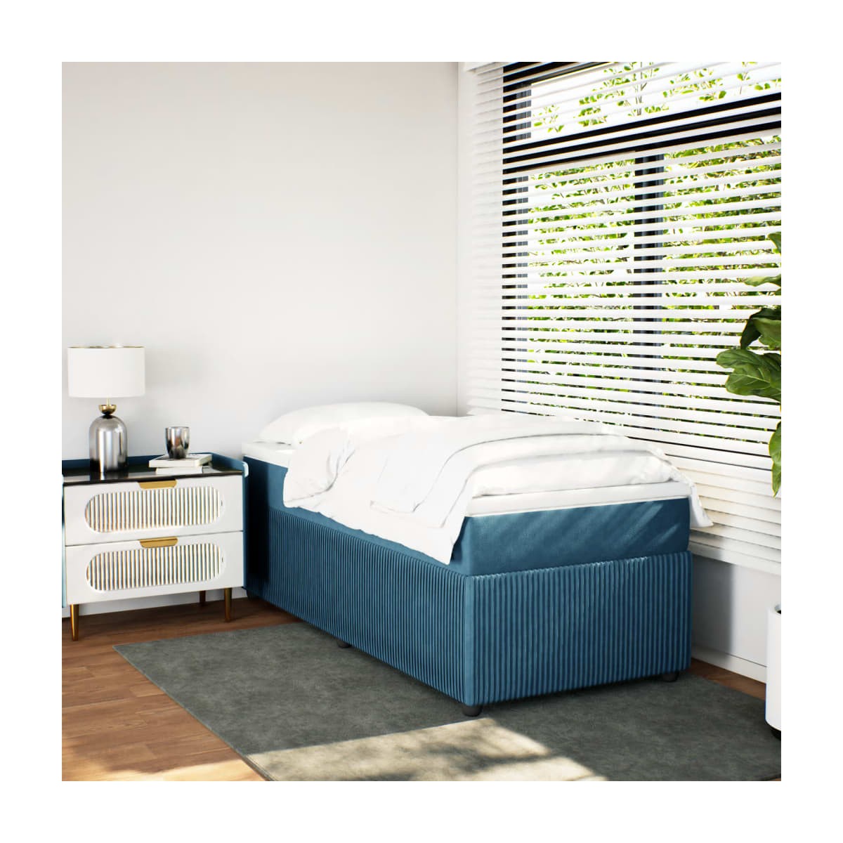 Utiliza esta cama de muelles para disfrutar de un sueño reparador. Te ofrece la máxima relajación y un sueño placentero. Terciopelo suave: El terciopelo es una tela suave y lujosa, reconocida por su denso pelo de fibras cortadas de forma uniforme que tienen una suave pelusa. La tela de terciopelo posee un característico y suave tacto, lo que hace que sea cómoda al tacto.Colchón de muelles ensacados: Este colchón de muelles ensacados cuenta con muelles ensacados individuales que funcionan de forma independiente para proporcionar un apoyo personalizado reaccionando únicamente a la presión de cada zona. Este diseño evita que se enrolle y reduce la transferencia de movimiento en comparación con los colchones tradicionales de bobina abierta. Cada muelle ensacado sostiene el cuerpo individualmente.Cubrecolchón cómodo: Este cubrecolchón mejora el soporte y la comodidad con su superficie suave y transpirable al tiempo que prolonga la vida útil de su colchón. Su funda extraíble permite un fácil lavado, lo que facilita el mantenimiento.Listones para un soporte óptimo: El somier se completa con listones para ofrecer un soporte esencial y transpirabilidad a tu colchón.Patas estables y duraderas: Esta cama está sostenida por patas resistentes, lo que garantiza estabilidad, seguridad y firmeza. Información útil:Por razones de higiene, el colchón no puede devolverse si se ha quitado o abierto el embalaje.
