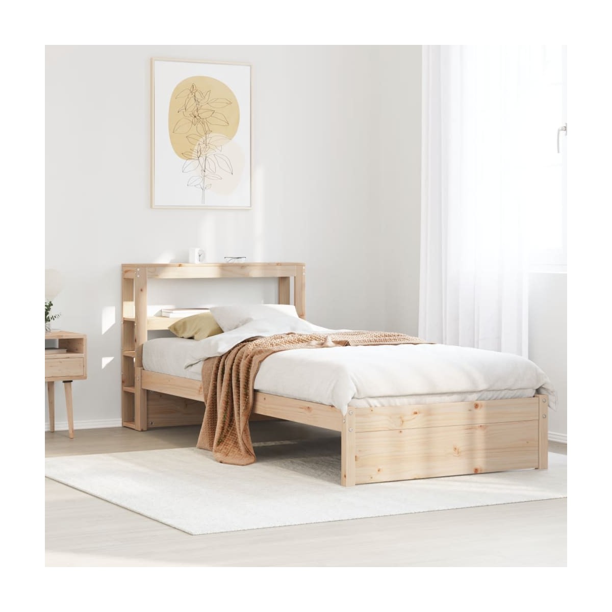 ¡Disfruta de una buena noche de sueño en esta estructura de cama de madera! Es un aporte práctico y decorativo para la casa. Madera de pino maciza: La madera de pino maciza es un bonito material natural. La madera de pino tiene vetas rectas, y los nudos dan al material su distintivo aspecto rústico.Estructura de cama resistente: La estructura de madera garantiza su solidez y estabilidad. Los listones de madera contrachapada proporcionan una buena distribución del peso, lo que garantiza que el colchón se mantenga en su sitio con cada giro y vuelta del cuerpo mientras duermes.Cabecero versátil: Esta estructura de cama viene con un cabecero que proporciona un excelente soporte para la espalda cuando te sientas en la cama para leer o ver la televisión, a la vez que sirve como elemento decorativo.Amplio espacio de almacenamiento: Este elegante cabecero cuenta con dos prácticos estantes, que ofrecen un amplio espacio de almacenamiento para tener todos tus artículos esenciales para la noche al alcance de la mano. Información útil:El colchón no está incluido con la cama. Disponemos de una variada selección de colchones. Puedes echar un vistazo a nuestra tienda para buscar el colchón correspondiente.