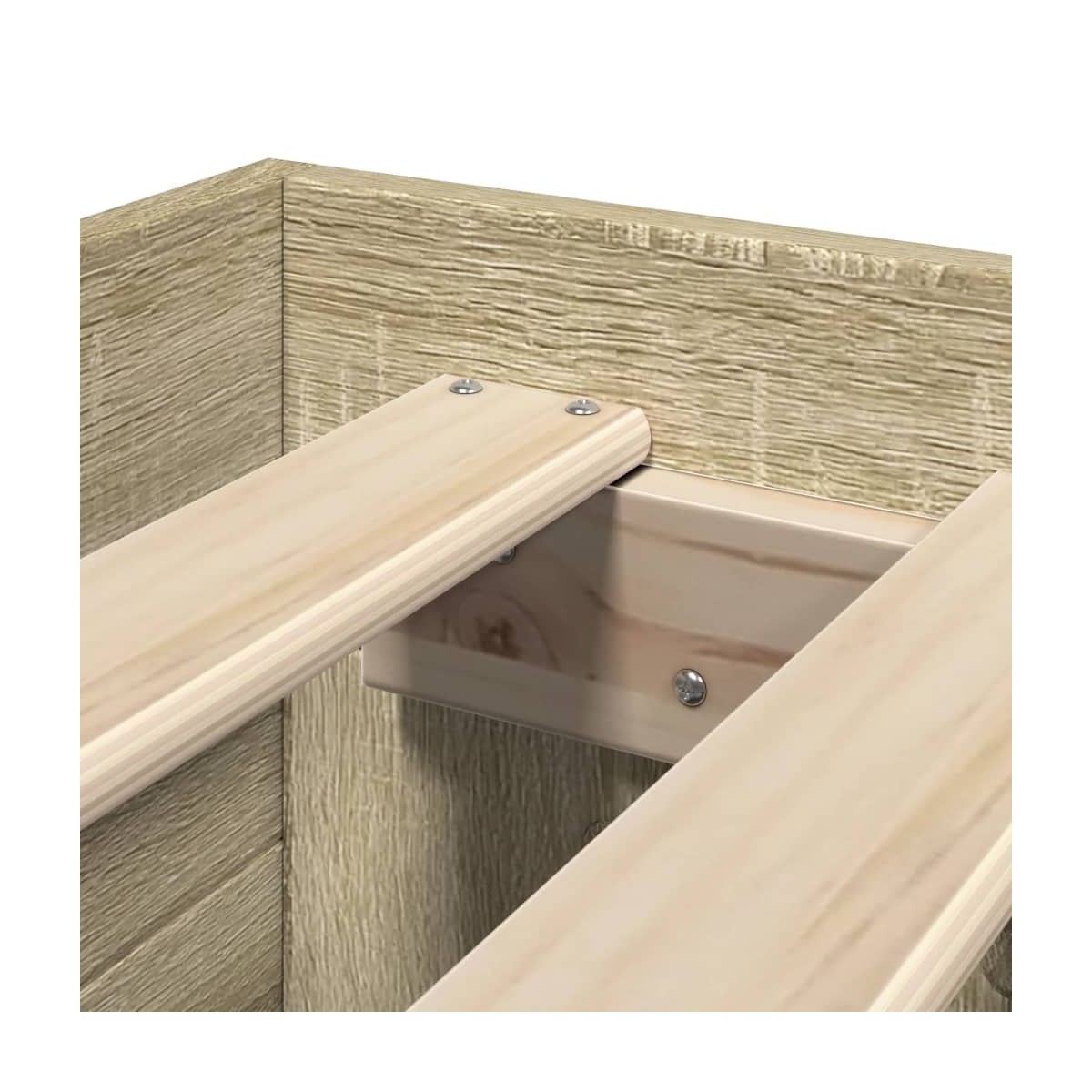 Consigue un sueño más reparador con esta estructura de cama. Es un aporte acogedor para cualquier dormitorio. Material duradero: La estructura de la cama está hecha de madera de ingeniería. La madera de ingeniería tiene una calidad excepcional, con una superficie lisa y también con fuerza, estabilidad y resistencia a la humedad.Somier de láminas para un soporte óptimo: La estructura de cama está equipada con un somier de láminas para el apoyo y la transpirabilidad del colchón.Función de almacenamiento: Este somier ofrece cajones y compartimentos abiertos para mantener tus revistas, libros, juguetes y otros objetos pequeños bien organizados. Información útil:El colchón no está incluido con la cama. Disponemos de una variada selección de colchones. Puedes echar un vistazo a nuestra tienda para buscar el colchón correspondiente.