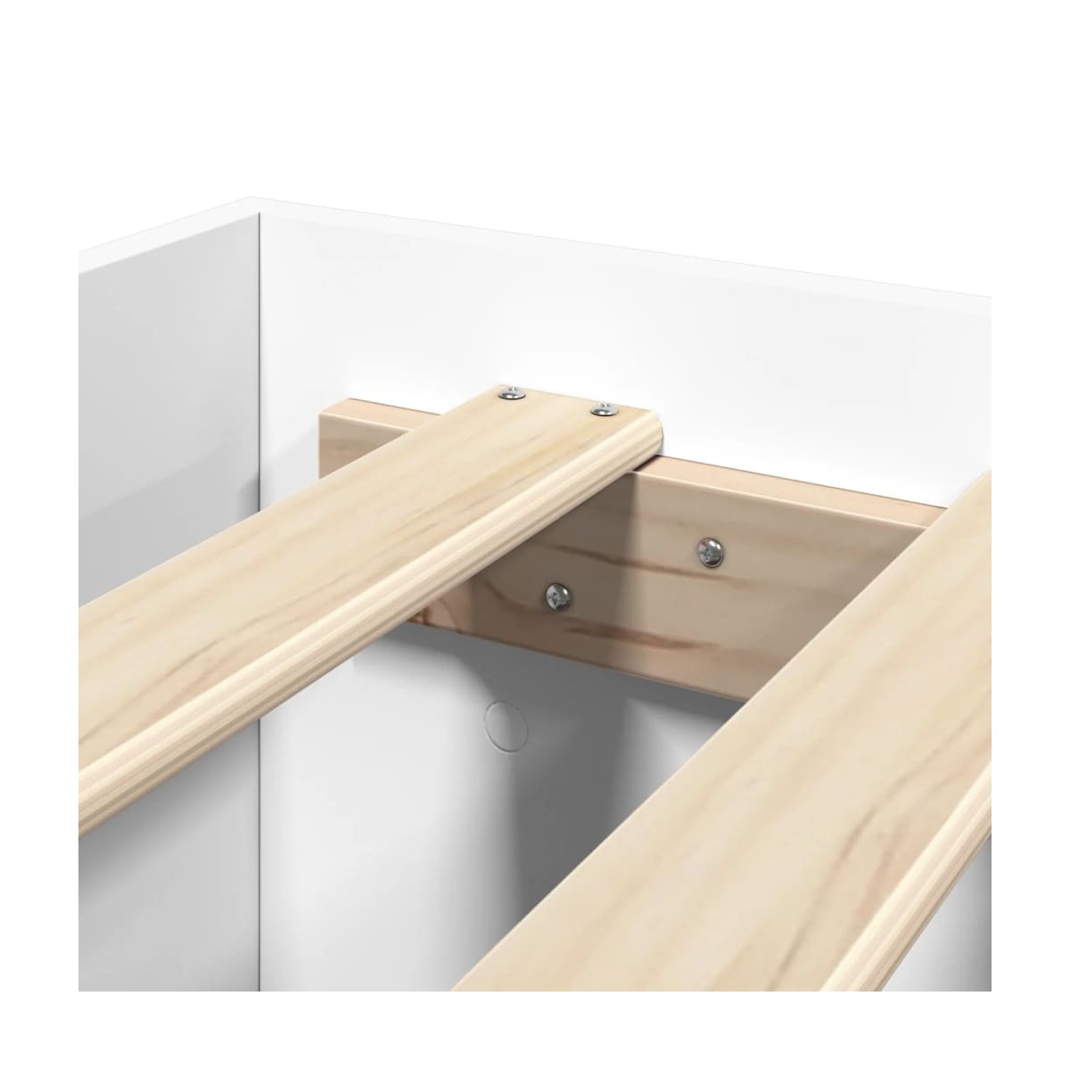 Consigue un sueño más reparador con esta estructura de cama. Es un aporte acogedor para cualquier dormitorio. Material duradero: La estructura de la cama está hecha de madera de ingeniería. La madera de ingeniería tiene una calidad excepcional, con una superficie lisa y también con fuerza, estabilidad y resistencia a la humedad.Somier de láminas para un soporte óptimo: La estructura de cama está equipada con un somier de láminas para el apoyo y la transpirabilidad del colchón.Función de almacenamiento: Este somier ofrece compartimentos abiertos para mantener tus revistas, libros, juguetes y otros objetos pequeños bien organizados. Información útil:El colchón no está incluido con la cama. Disponemos de una variada selección de colchones. Puedes echar un vistazo a nuestra tienda para buscar el colchón correspondiente.