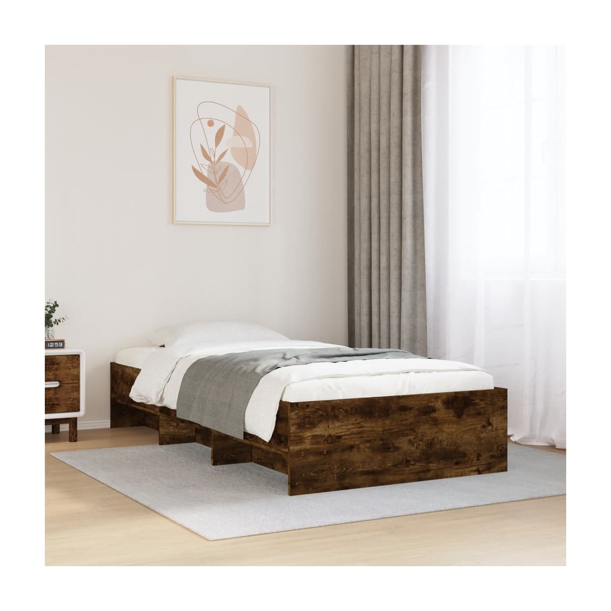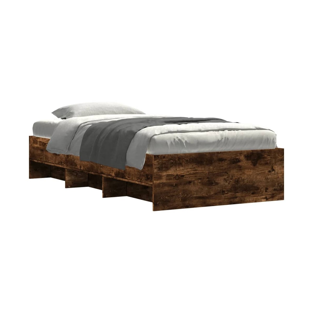Consigue un sueño más reparador con esta estructura de cama. Es un aporte acogedor para cualquier dormitorio. Material duradero: La estructura de la cama está hecha de madera de ingeniería. La madera de ingeniería tiene una calidad excepcional, con una superficie lisa y también con fuerza, estabilidad y resistencia a la humedad.Somier de láminas para un soporte óptimo: La estructura de cama está equipada con un somier de láminas para el apoyo y la transpirabilidad del colchón.Función de almacenamiento: Este somier ofrece compartimentos abiertos para mantener tus revistas, libros, juguetes y otros objetos pequeños bien organizados. Información útil:El colchón no está incluido con la cama. Disponemos de una variada selección de colchones. Puedes echar un vistazo a nuestra tienda para buscar el colchón correspondiente.