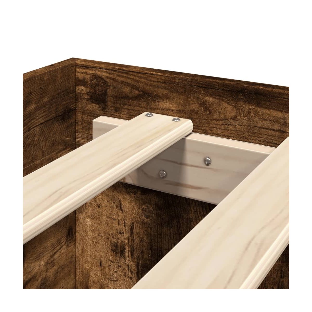 Consigue un sueño más reparador con esta estructura de cama. Es un aporte acogedor para cualquier dormitorio. Material duradero: La estructura de la cama está hecha de madera de ingeniería. La madera de ingeniería tiene una calidad excepcional, con una superficie lisa y también con fuerza, estabilidad y resistencia a la humedad.Somier de láminas para un soporte óptimo: La estructura de cama está equipada con un somier de láminas para el apoyo y la transpirabilidad del colchón.Función de almacenamiento: Este somier ofrece compartimentos abiertos para mantener tus revistas, libros, juguetes y otros objetos pequeños bien organizados. Información útil:El colchón no está incluido con la cama. Disponemos de una variada selección de colchones. Puedes echar un vistazo a nuestra tienda para buscar el colchón correspondiente.
