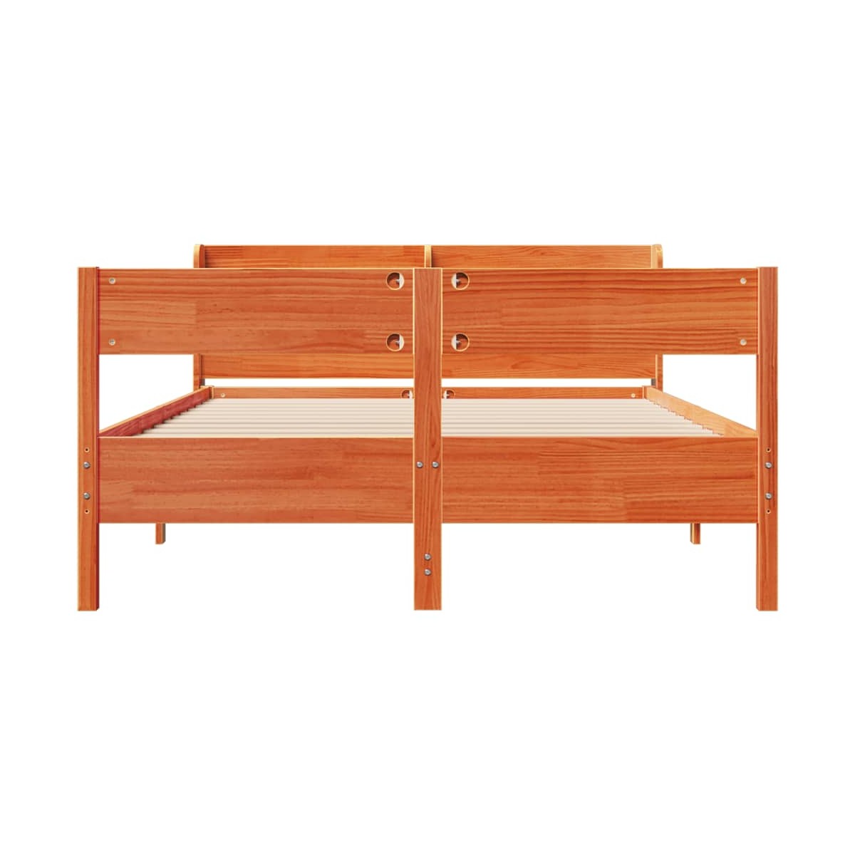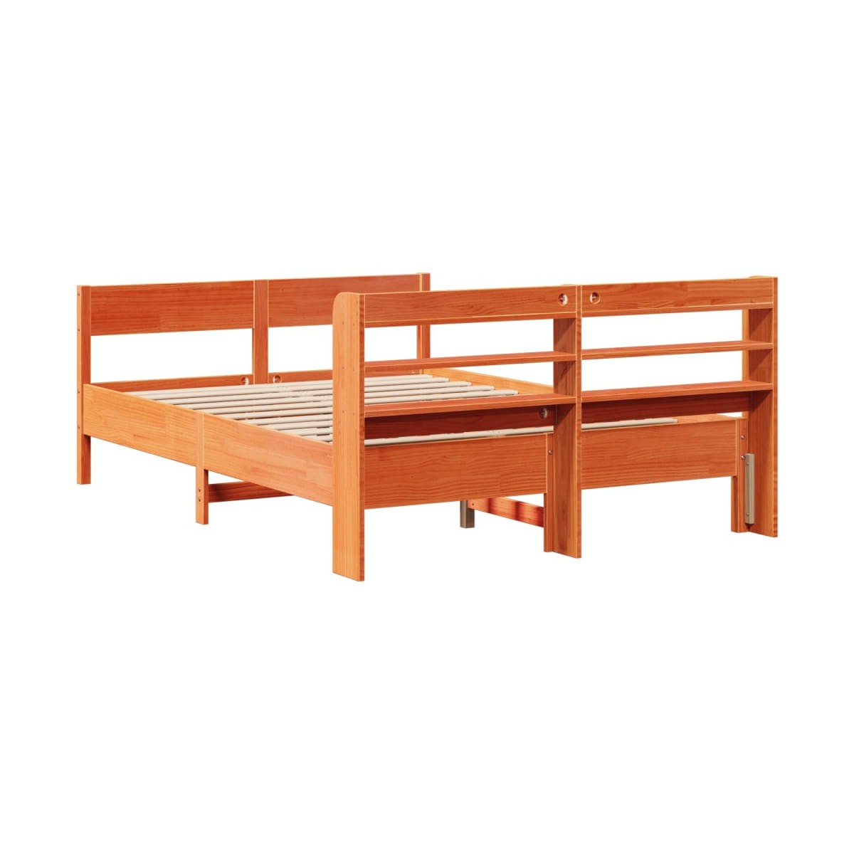 Consigue un sueño más reparador con esta estructura de cama. Es un aporte acogedor para cualquier dormitorio. Estructura estable y duradera: La madera de pino maciza es conocida por su resistencia y durabilidad. Sus vetas rectas y sus característicos nudos contribuyen a su encanto rústico.Somier de láminas para un soporte óptimo: La estructura de cama está equipada con un somier de láminas para el apoyo y la transpirabilidad del colchón.Cabecero versátil: Esta estructura de cama viene con un cabecero que proporciona un excelente soporte para la espalda cuando te sientas en la cama para leer o ver la televisión, a la vez que sirve como elemento decorativo.Amplio espacio de almacenamiento: Este elegante cabecero cuenta con tres prácticos estantes, que ofrecen un amplio espacio de almacenamiento para mantener todos tus objetos esenciales nocturnos al alcance de la mano. Información útil:El colchón no está incluido con la cama. Disponemos de una variada selección de colchones. Puedes echar un vistazo a nuestra tienda para buscar el colchón correspondiente.
