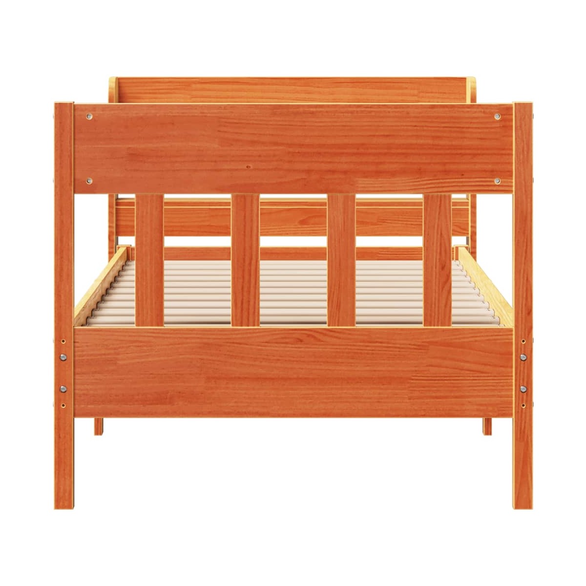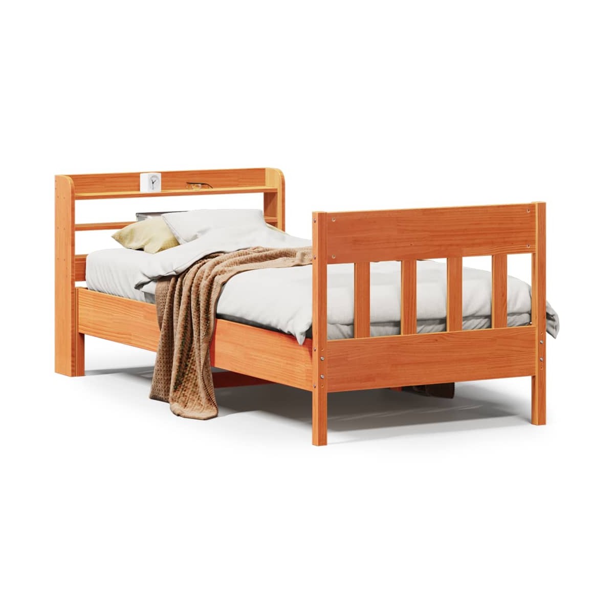 Consigue un sueño más reparador con esta estructura de cama. Es un aporte acogedor para cualquier dormitorio. Estructura estable y duradera: La madera de pino maciza es conocida por su resistencia y durabilidad. Sus vetas rectas y sus característicos nudos contribuyen a su encanto rústico.Somier de láminas para un soporte óptimo: La estructura de cama está equipada con un somier de láminas para el apoyo y la transpirabilidad del colchón.Cabecero versátil: Esta estructura de cama viene con un cabecero que proporciona un excelente soporte para la espalda cuando te sientas en la cama para leer o ver la televisión, a la vez que sirve como elemento decorativo.Amplio espacio de almacenamiento: Este elegante cabecero cuenta con tres prácticos estantes, que ofrecen un amplio espacio de almacenamiento para mantener todos tus objetos esenciales nocturnos al alcance de la mano. Información útil:El colchón no está incluido con la cama. Disponemos de una variada selección de colchones. Puedes echar un vistazo a nuestra tienda para buscar el colchón correspondiente.
