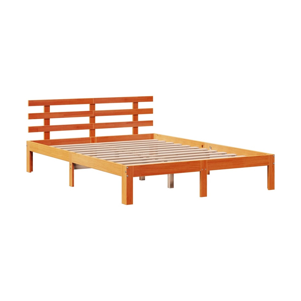 ¡Disfruta de una buena noche de sueño en esta estructura de cama de madera! Es un aporte práctico y decorativo para la casa. Madera de pino maciza: La madera de pino maciza es un bonito material natural. La madera de pino tiene vetas rectas, y los nudos dan al material su distintivo aspecto rústico.Estructura de cama resistente: La estructura de madera garantiza su solidez y estabilidad. Los listones de madera contrachapada proporcionan una buena distribución del peso, lo que garantiza que el colchón se mantenga en su sitio con cada giro y vuelta del cuerpo mientras duermes.Cabecero y estribo de cama útiles: El cabecero y el estribo de la cama de madera mantienen el colchón en su lugar. Además, la cabecera te brinda un excelente soporte para la espalda mientras estás sentado leyendo o mirando la televisión.Amplio espacio de almacenamiento: Este elegante cabecero cuenta con dos prácticos estantes, que ofrecen un amplio espacio de almacenamiento para tener todos tus artículos esenciales para la noche al alcance de la mano. Información útil:El colchón no está incluido con la cama. Disponemos de una variada selección de colchones. Puedes echar un vistazo a nuestra tienda para buscar el colchón correspondiente.