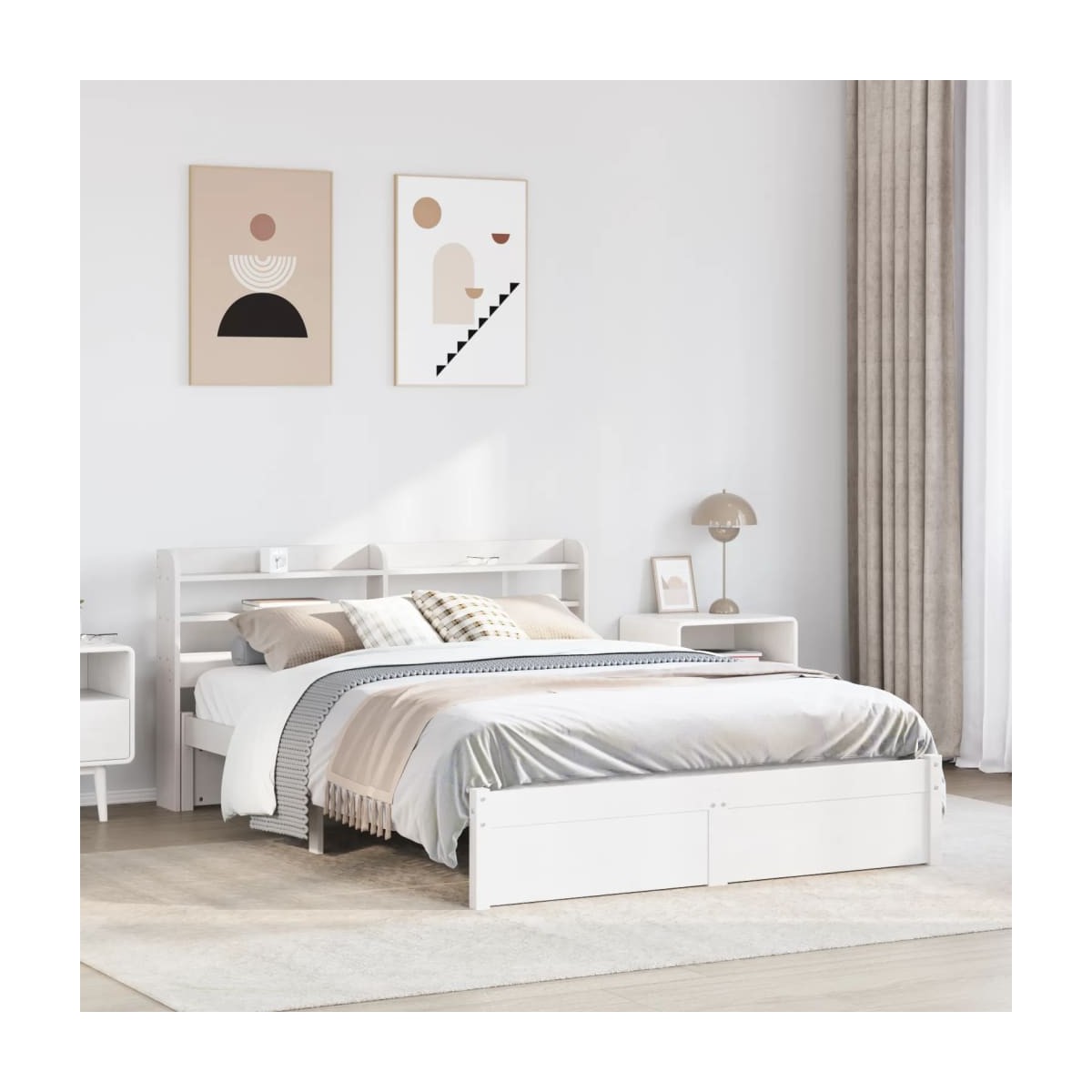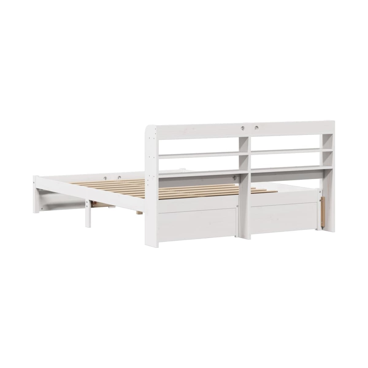 ¡Disfruta de una buena noche de sueño en esta estructura de cama de madera! Es un aporte práctico y decorativo para la casa. Madera de pino maciza: La madera de pino maciza es un bonito material natural. La madera de pino tiene vetas rectas, y los nudos dan al material su distintivo aspecto rústico.Estructura de cama resistente: La estructura de madera garantiza su solidez y estabilidad. Los listones de madera contrachapada proporcionan una buena distribución del peso, lo que garantiza que el colchón se mantenga en su sitio con cada giro y vuelta del cuerpo mientras duermes.Cabecero versátil: Esta estructura de cama viene con un cabecero que proporciona un excelente soporte para la espalda cuando te sientas en la cama para leer o ver la televisión, a la vez que sirve como elemento decorativo.Amplio espacio de almacenamiento: Este elegante cabecero cuenta con dos prácticos estantes, que ofrecen un amplio espacio de almacenamiento para tener todos tus artículos esenciales para la noche al alcance de la mano. Información útil:El colchón no está incluido con la cama. Disponemos de una variada selección de colchones. Puedes echar un vistazo a nuestra tienda para buscar el colchón correspondiente.