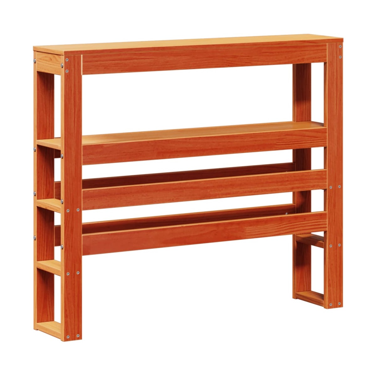 Consigue un sueño más reparador con esta estructura de cama. Es un aporte acogedor para cualquier dormitorio. Estructura estable y duradera: La madera de pino maciza es conocida por su resistencia y durabilidad. Sus vetas rectas y sus característicos nudos contribuyen a su encanto rústico.Somier de láminas para un soporte óptimo: La estructura de cama está equipada con un somier de láminas para el apoyo y la transpirabilidad del colchón.Cabecero versátil: Esta estructura de cama viene con un cabecero que proporciona un excelente soporte para la espalda cuando te sientas en la cama para leer o ver la televisión, a la vez que sirve como elemento decorativo.Amplio espacio de almacenamiento: Este elegante cabecero cuenta con dos prácticos estantes, que ofrecen un amplio espacio de almacenamiento para tener todos tus artículos esenciales para la noche al alcance de la mano. Información útil:El colchón no está incluido con la cama. Disponemos de una variada selección de colchones. Puedes echar un vistazo a nuestra tienda para buscar el colchón correspondiente.