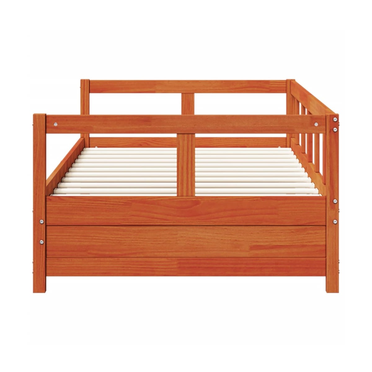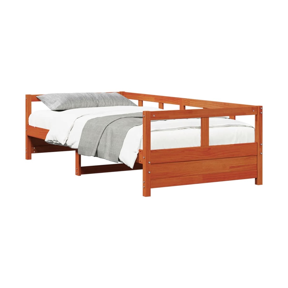Este sofá cama, que sirve como sofá y cama, es un complemento práctico y llamativo para tu salón o dormitorio.Estructura estable y duradera: La madera de pino maciza es conocida por su resistencia y durabilidad. Sus vetas rectas y sus característicos nudos contribuyen a su encanto rústico.Sofá cama versátil: El sofá cama funciona como sofá durante el día y se convierte fácilmente en cama individual por la noche, lo que proporciona una solución práctica para recibir invitados y maximizar el espacio.Somier de láminas para un soporte óptimo: La estructura de cama está equipada con un somier de láminas para el apoyo y la transpirabilidad del colchón.Patas estables y duraderas: Esta cama está sostenida por patas resistentes, lo que garantiza estabilidad, seguridad y firmeza.Información útil:Ten en cuenta que la entrega incluye únicamente una estructura de cama. El colchón no está incluido. Puedes echar un vistazo a nuestra tienda para buscar el correspondiente colchón.