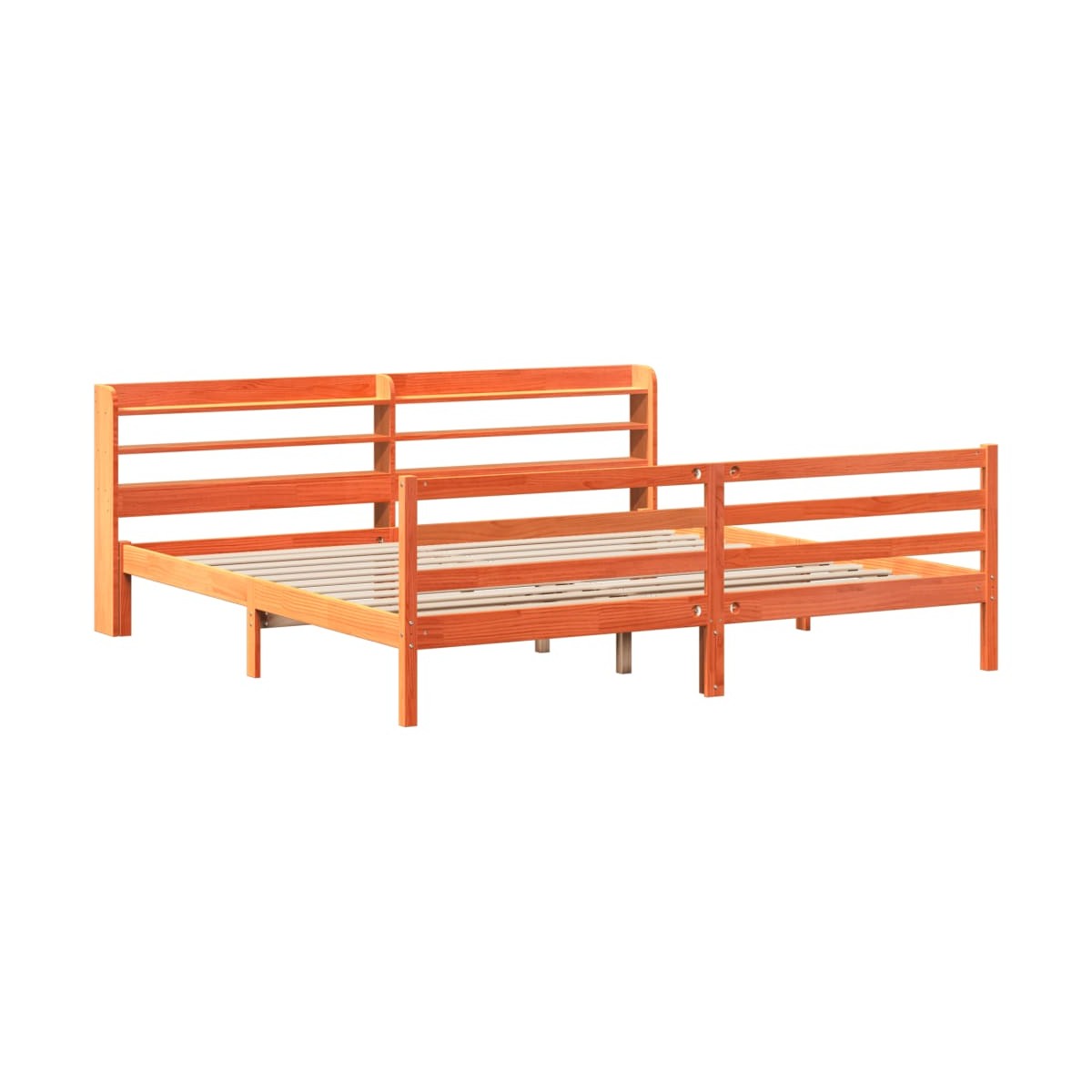 Consigue un sueño más reparador con esta estructura de cama. Es un aporte acogedor para cualquier dormitorio. Estructura estable y duradera: La madera de pino maciza es conocida por su resistencia y durabilidad. Sus vetas rectas y sus característicos nudos contribuyen a su encanto rústico.Somier de láminas para un soporte óptimo: La estructura de cama está equipada con un somier de láminas para el apoyo y la transpirabilidad del colchón.Amplio espacio de almacenamiento: Este elegante cabecero cuenta con tres prácticos estantes, que ofrecen un amplio espacio de almacenamiento para mantener todos tus objetos esenciales nocturnos al alcance de la mano.Cabecero independiente: El cabecero independiente ofrece una solución sin complicaciones para colocarlo y reposicionarlo sin esfuerzo y sin necesidad de instalarlo en la pared. Información útil:El colchón no está incluido con la cama. Disponemos de una variada selección de colchones. Puedes echar un vistazo a nuestra tienda para buscar el colchón correspondiente.