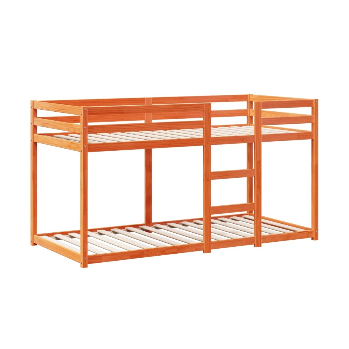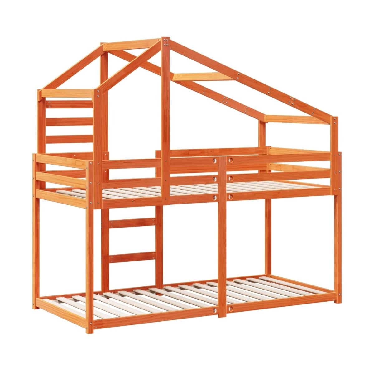 Esta litera infantil con techo es elegante y funcional, por lo que es un aporte perfecto para cualquier habitación con espacio limitado. Madera de pino maciza: La madera de pino maciza es un bonito material natural. La madera de pino tiene vetas rectas, y los nudos dan al material su distintivo aspecto rústico.Diseño seguro: La cama alta está diseñada pensando en la seguridad. Cuenta con barandillas para evitar que el usuario salga rodando mientras duerme.Listones robustos: Los listones de madera contrachapada proporcionan una buena distribución del peso, lo que garantiza que el colchón se mantenga en tu sitio con cada giro y vuelta del cuerpo mientras duermes.Gran diversión: Al combinar el techo con la cama de tu hijo, puedes crear un escondite que le ofrezca a tu hijo mucha diversión a la hora de acostarse. Este innovador añadido al cuarto no solo será un punto emocionante, sino que también traerá asombro y emoción a la habitación de los niños.Adecuado para espacios limitados: La estructura de cama es una excelente opción para cualquier habitación con espacio limitado, ya que proporciona dos camas individuales con un diseño compacto.Puerta lateral abierta: El techo cuenta con una puerta lateral abierta, lo que facilita el acceso para que tus hijos entren y salgan de la cama. Información útil:El colchón no está incluido con la cama. Disponemos de una variada selección de colchones. Puedes echar un vistazo a nuestra tienda para buscar el colchón correspondiente.