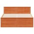 Consigue un sueño más reparador con esta estructura de cama. Es un aporte acogedor para cualquier dormitorio. Estructura estable y duradera: La madera de pino maciza es conocida por su resistencia y durabilidad. Sus vetas rectas y sus característicos nudos contribuyen a su encanto rústico.Somier de láminas para un soporte óptimo: La estructura de cama está equipada con un somier de láminas para el apoyo y la transpirabilidad del colchón.Patas estables y duraderas: Esta cama está sostenida por patas resistentes, lo que garantiza estabilidad, seguridad y firmeza.Cabecero funcional: El cabecero de la cama de madera puede mantener el colchón en su sitio. Además, el cabecero te brinda un excelente soporte para la espalda mientras estás sentado leyendo o mirando la televisión.Función de almacenamiento: Este somier ofrece cajones para mantener tus revistas, libros, juguetes y otros objetos pequeños bien organizados. Información útil:El colchón no está incluido con la cama. Disponemos de una variada selección de colchones. Puedes echar un vistazo a nuestra tienda para buscar el colchón correspondiente.