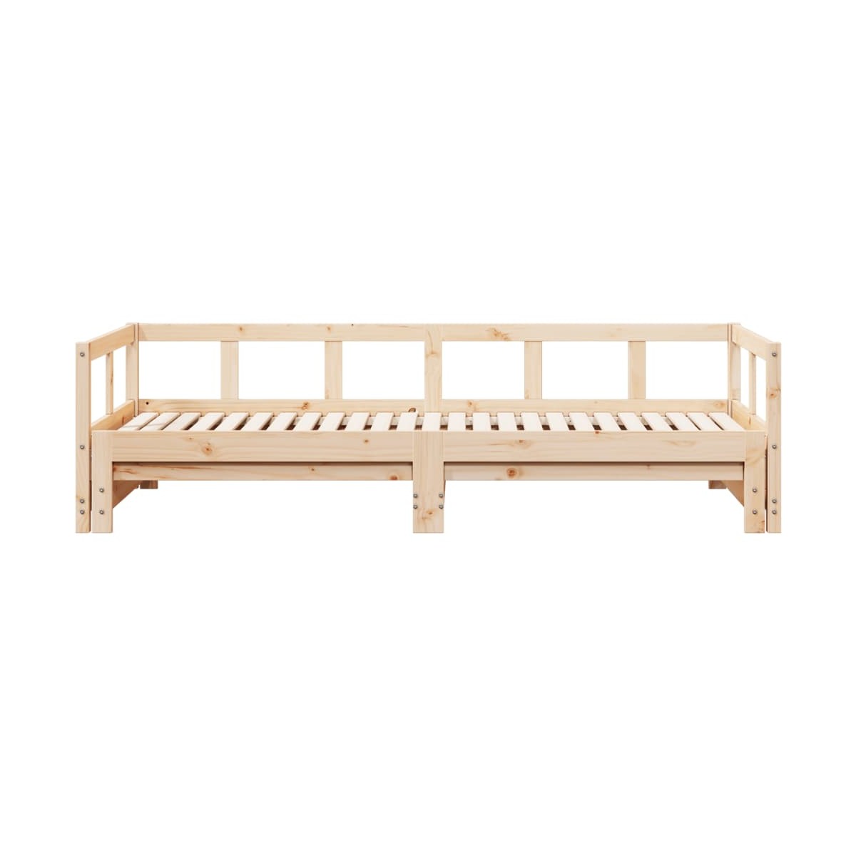 Este sofá cama 2 en 1 con nidos, que sirve como sofá y cama, es un complemento práctico y llamativo para tu salón o dormitorio.Estructura estable y duradera: La madera de pino maciza es conocida por su resistencia y durabilidad. Sus vetas rectas y sus característicos nudos contribuyen a su encanto rústico.Sofá cama versátil: El sofá cama funciona como sofá durante el día y se convierte fácilmente en una cama doble por la noche sacando la cama nido, lo que proporciona una solución práctica para recibir invitados y maximizar el espacio.Somier de láminas para un soporte óptimo: La estructura de cama está equipada con un somier de láminas para el apoyo y la transpirabilidad del colchón.Patas estables y duraderas: Esta cama está sostenida por patas resistentes, lo que garantiza estabilidad, seguridad y firmeza.Información útil:Ten en cuenta que la entrega incluye únicamente una estructura de cama. El colchón no está incluido. Puedes echar un vistazo a nuestra tienda para buscar el correspondiente colchón.