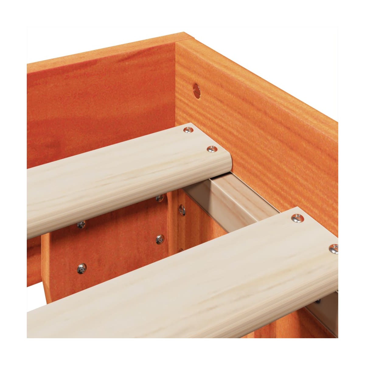 Consigue un sueño más reparador con esta estructura de cama. Es un aporte acogedor para cualquier dormitorio. Estructura estable y duradera: La madera de pino maciza es conocida por su resistencia y durabilidad. Sus vetas rectas y sus característicos nudos contribuyen a su encanto rústico.Somier de láminas para un soporte óptimo: El base de cama está equipado con un somier de láminas para el apoyo y la transpirabilidad del colchón.Espacio de almacenamiento adicional: Para mayor comodidad, la cama de madera dispone de un espacio debajo para guardar tus cajas de almacenaje y que no se vean.Patas estables y duraderas: Este somier está sostenido por patas resistentes, lo que garantiza estabilidad, seguridad y firmeza. Información útil:El colchón no está incluido con la cama. Disponemos de una variada selección de colchones. Puedes echar un vistazo a nuestra tienda para buscar el colchón correspondiente.