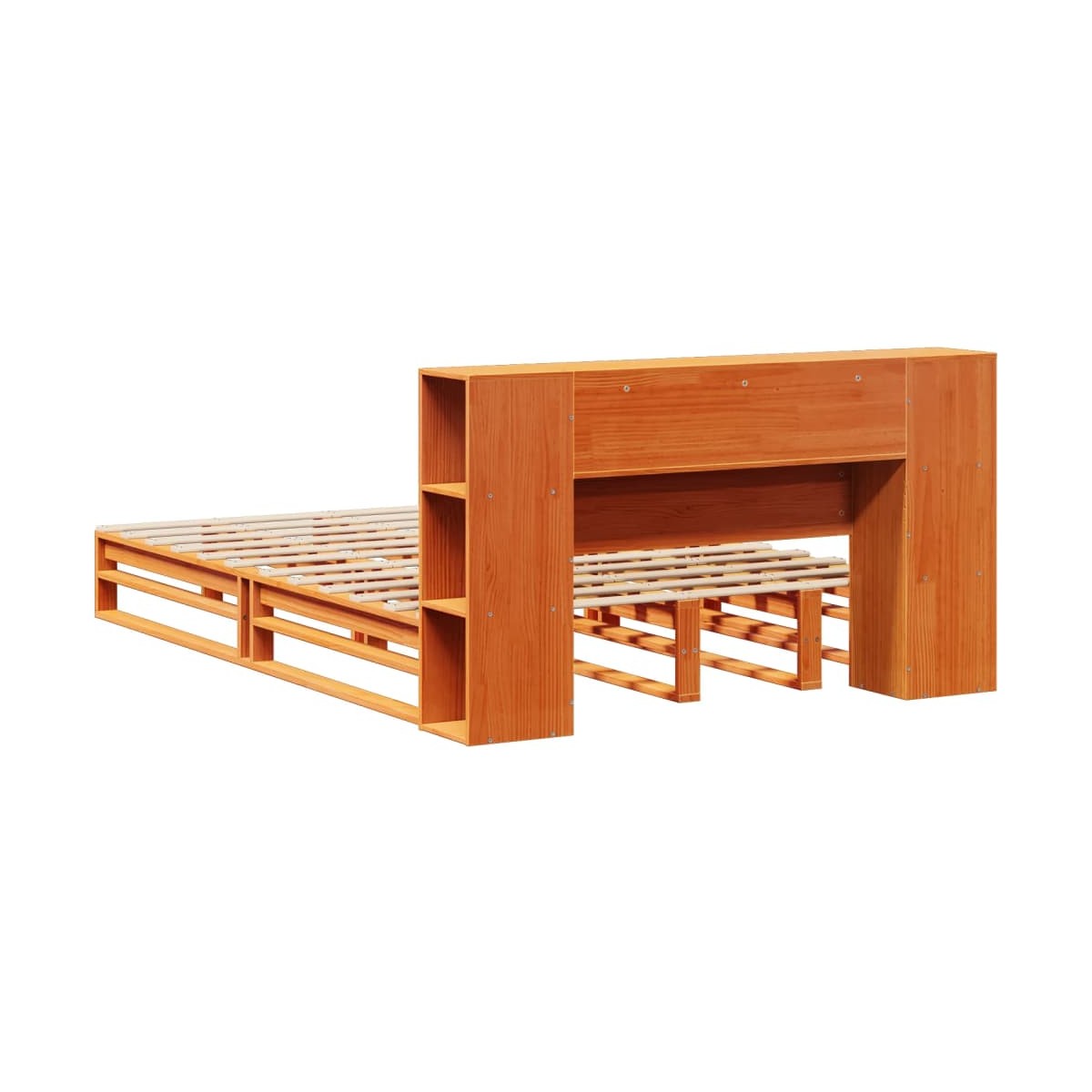 ¡Consigue una mejor noche de sueño reparador con esta cama con estantería! Es un aporte acogedor para cualquier dormitorio. Estructura estable y duradera: La madera de pino maciza es conocida por su resistencia y durabilidad. Sus vetas rectas y sus característicos nudos contribuyen a su encanto rústico. Somier de láminas para un soporte óptimo: La estructura de cama está equipada con un somier de láminas para el apoyo y la transpirabilidad del colchón. Amplio espacio de almacenamiento: El cabecero de estantería ofrece un amplio espacio de almacenamiento para mantener libros, artículos decorativos o pertenencias personales al alcance de la mano, lo que reduce el desorden en el dormitorio. Práctico pie de cama: El pie de cama no solo contribuye a la estabilidad general del marco de la cama, proporcionando un entorno seguro para dormir, sino que también asegura su colchón en su lugar y evita que las mantas, sábanas y otra ropa de cama se caigan del extremo de la cama, manteniendo una apariencia ordenada. Ahorro de espacio: Este cabecero es una opción de ahorro de espacio que puede sustituir la necesidad de una mesilla de noche, ayudando a maximizar el espacio de tu dormitorio, y haciéndolo ideal para espacios pequeños o limitados. Información útil:El colchón no está incluido con la cama. Disponemos de una variada selección de colchones. Puedes echar un vistazo a nuestra tienda para buscar el colchón correspondiente.