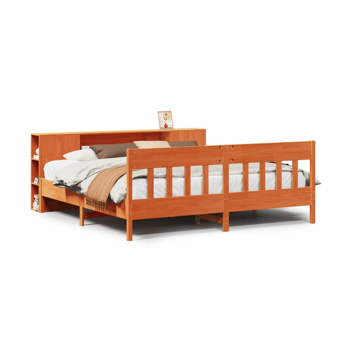 ¡Consigue una mejor noche de sueño reparador con esta cama con estantería! Es un aporte acogedor para cualquier dormitorio. Estructura estable y duradera: La madera de pino maciza es conocida por su resistencia y durabilidad. Sus vetas rectas y sus característicos nudos contribuyen a su encanto rústico. Somier de láminas para un soporte óptimo: La estructura de cama está equipada con un somier de láminas para el apoyo y la transpirabilidad del colchón. Amplio espacio de almacenamiento: El cabecero de estantería ofrece un amplio espacio de almacenamiento para mantener libros, artículos decorativos o pertenencias personales al alcance de la mano, lo que reduce el desorden en el dormitorio. Práctico pie de cama: El pie de cama no solo contribuye a la estabilidad general del marco de la cama, proporcionando un entorno seguro para dormir, sino que también asegura su colchón en su lugar y evita que las mantas, sábanas y otra ropa de cama se caigan del extremo de la cama, manteniendo una apariencia ordenada. Ahorro de espacio: Este cabecero es una opción de ahorro de espacio que puede sustituir la necesidad de una mesilla de noche, ayudando a maximizar el espacio de tu dormitorio, y haciéndolo ideal para espacios pequeños o limitados. Información útil:El colchón no está incluido con la cama. Disponemos de una variada selección de colchones. Puedes echar un vistazo a nuestra tienda para buscar el colchón correspondiente.