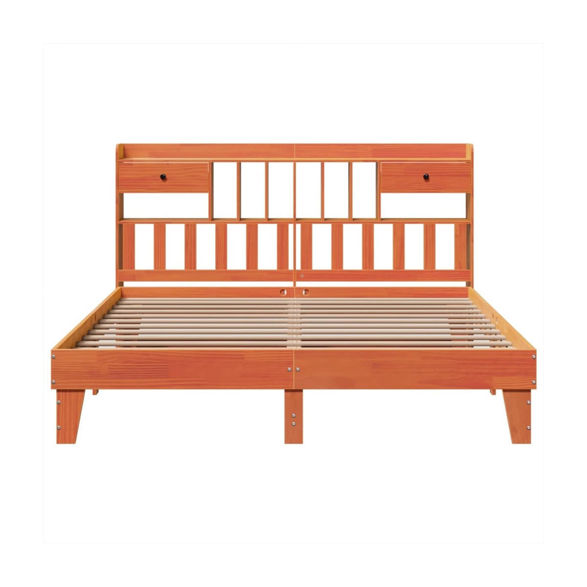 Consigue un sueño más reparador con esta estructura de cama. Es un aporte acogedor para cualquier dormitorio. Estructura estable y duradera: La madera de pino maciza es conocida por su resistencia y durabilidad. Sus vetas rectas y sus característicos nudos contribuyen a su encanto rústico.Somier de láminas para un soporte óptimo: El base de cama está equipado con un somier de láminas para el apoyo y la transpirabilidad del colchón.Espacio de almacenamiento extra: Este elegante cabecero cuenta con 6 prácticos compartimentos y 2 cajones, lo que ofrece un amplio espacio de almacenamiento para mantener todos los elementos esenciales de la noche al alcance de la mano. Para mayor comodidad, la cama de madera tiene un espacio adicional debajo para mantener tus cajas de almacenamiento fuera de la vista.Patas estables y duraderas: Este somier está sostenido por patas resistentes, lo que garantiza estabilidad, seguridad y firmeza.Cabecero independiente: El cabecero independiente ofrece una solución sin complicaciones para colocarlo y reposicionarlo sin esfuerzo y sin necesidad de instalarlo en la pared. Información útil:El colchón no está incluido con la cama. Disponemos de una variada selección de colchones. Puedes echar un vistazo a nuestra tienda para buscar el colchón correspondiente.