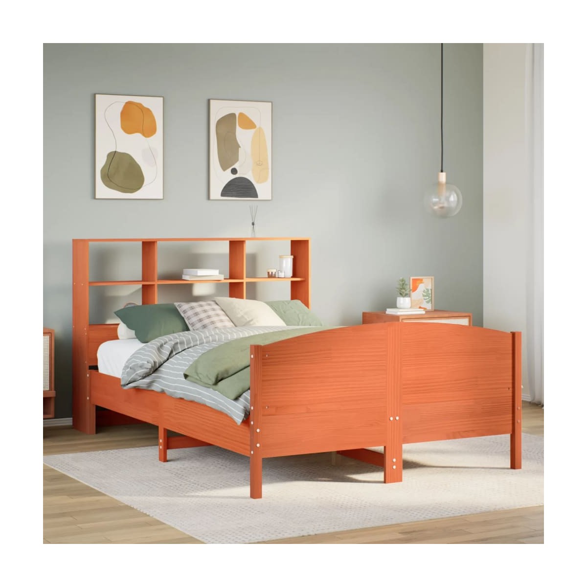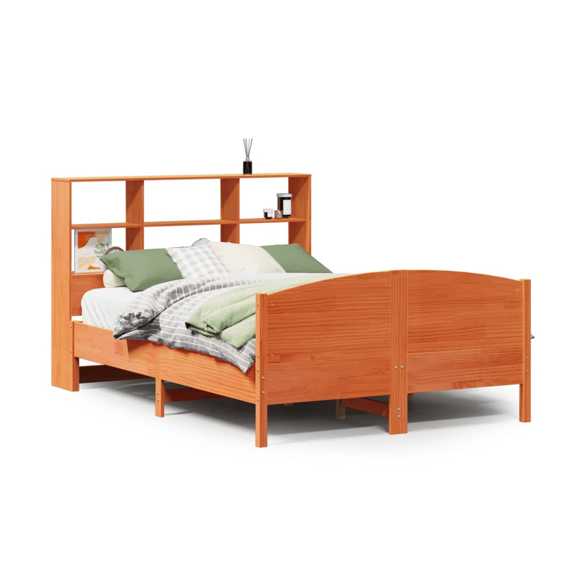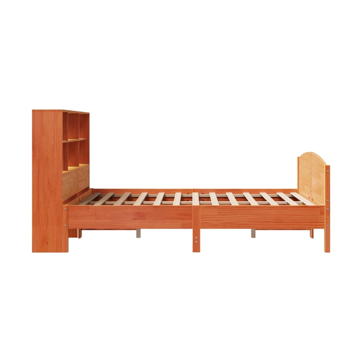 ¡Consigue una mejor noche de sueño reparador con esta cama con estantería! Es un aporte acogedor para cualquier dormitorio. Estructura estable y duradera: La madera de pino maciza es conocida por su resistencia y durabilidad. Sus vetas rectas y sus característicos nudos contribuyen a su encanto rústico. Somier de láminas para un soporte óptimo: La estructura de cama está equipada con un somier de láminas para el apoyo y la transpirabilidad del colchón. Amplio espacio de almacenamiento: El cabecero de estantería ofrece un amplio espacio de almacenamiento para mantener libros, artículos decorativos o pertenencias personales al alcance de la mano, lo que reduce el desorden en el dormitorio. Práctico pie de cama: El pie de cama no solo contribuye a la estabilidad general del marco de la cama, proporcionando un entorno seguro para dormir, sino que también asegura su colchón en su lugar y evita que las mantas, sábanas y otra ropa de cama se caigan del extremo de la cama, manteniendo una apariencia ordenada. Ahorro de espacio: Este cabecero es una opción de ahorro de espacio que puede sustituir la necesidad de una mesilla de noche, ayudando a maximizar el espacio de tu dormitorio, y haciéndolo ideal para espacios pequeños o limitados. Información útil:El colchón no está incluido con la cama. Disponemos de una variada selección de colchones. Puedes echar un vistazo a nuestra tienda para buscar el colchón correspondiente.