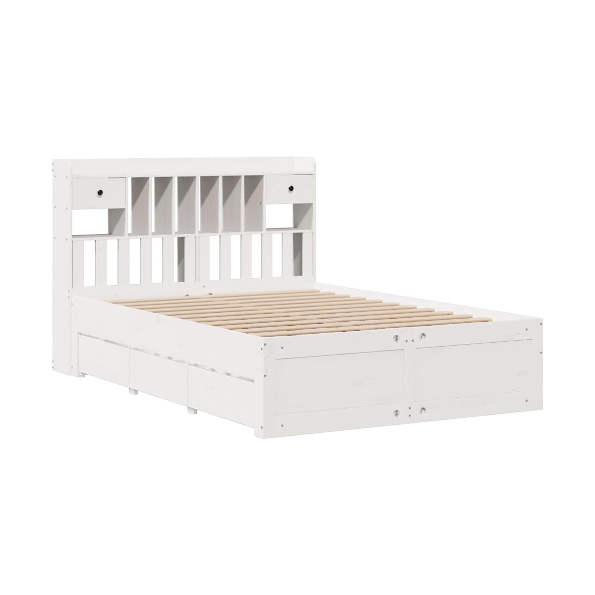 ¡Consigue una mejor noche de sueño reparador con esta cama con estantería! Es un aporte acogedor para cualquier dormitorio. Estructura estable y duradera: La madera de pino maciza es conocida por su resistencia y durabilidad. Sus vetas rectas y sus característicos nudos contribuyen a su encanto rústico.Somier de láminas para un soporte óptimo: La estructura de cama está equipada con un somier de láminas para el apoyo y la transpirabilidad del colchón.Amplio espacio de almacenamiento: El cabecero de estantería ofrece un amplio espacio de almacenamiento para mantener libros, artículos decorativos o pertenencias personales al alcance de la mano, lo que reduce el desorden en el dormitorio.Ahorro de espacio: Este cabecero es una opción de ahorro de espacio que puede sustituir la necesidad de una mesilla de noche, ayudando a maximizar el espacio de tu dormitorio, y haciéndolo ideal para espacios pequeños o limitados.Maniobrabilidad sin esfuerzo: Este cajón de almacenamiento bajo la cama cuenta con cuatro ruedas, que proporcionan una maniobrabilidad suave y sin esfuerzo para deslizarse dentro y fuera de debajo de tu cama. Información útil:El colchón no está incluido con la cama. Disponemos de una variada selección de colchones. Puedes echar un vistazo a nuestra tienda para buscar el colchón correspondiente.